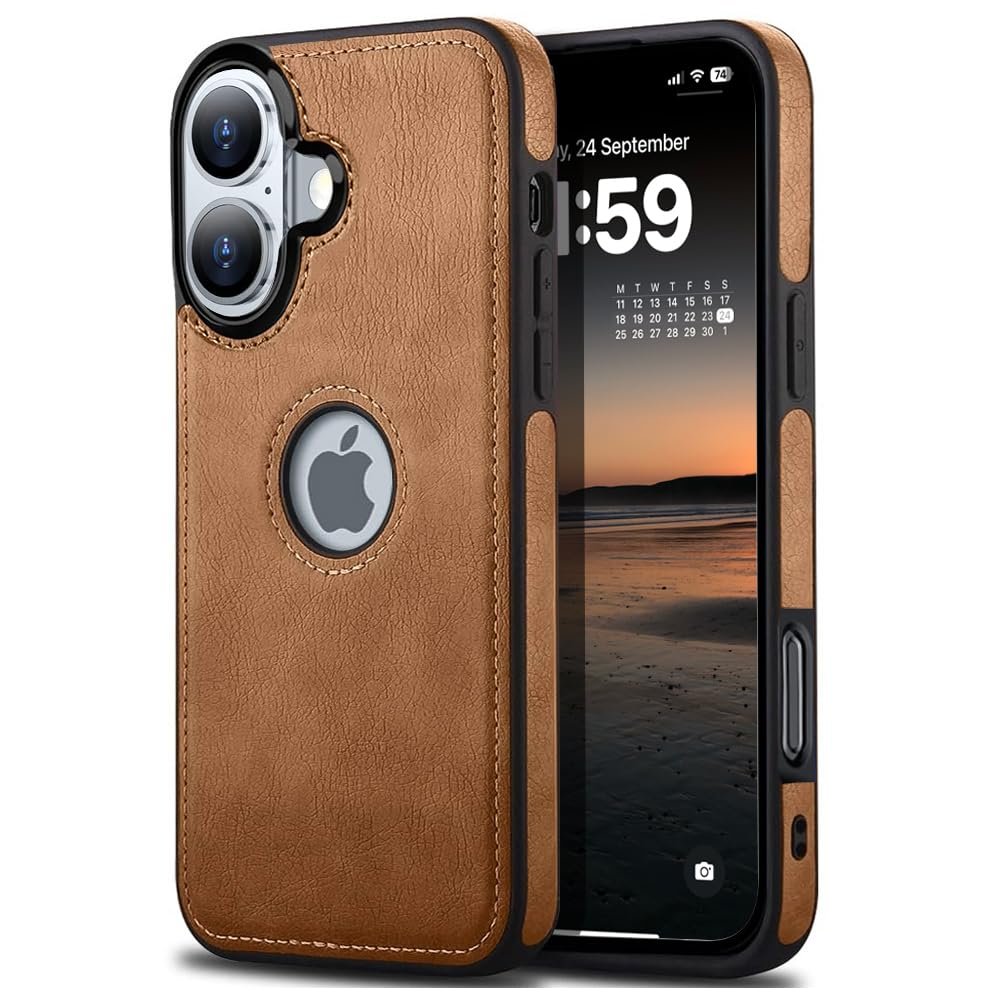 ️ Genuine Leather Finish iPhone 16 Back Cover Case |Shockproof Design |Raised Edges for Camera & Screen Protection |Super Soft – Touch |Leather Case for iPhone 16 (Brown)