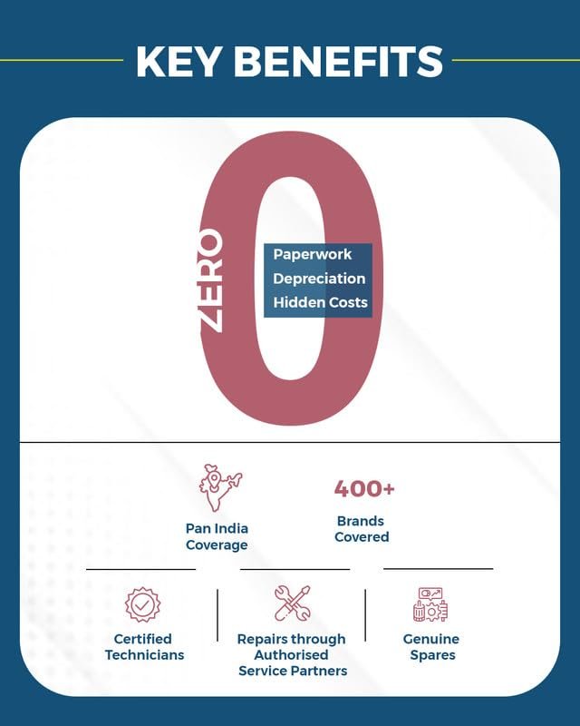 NO EXCESS CHARGES, 100% CASHLESS, UNLIMITED REPAIRS and genuine spare parts used for repairs or replacement, PAN INDIA Coverage, FREE doorstep pick-up and drop service