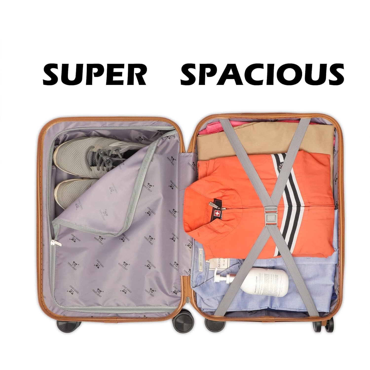 Outer Material: Polycarbonate, Casing: HARD, Handle Type : telescopic Trolley with 4 wheels to manoeuvre the bag easily