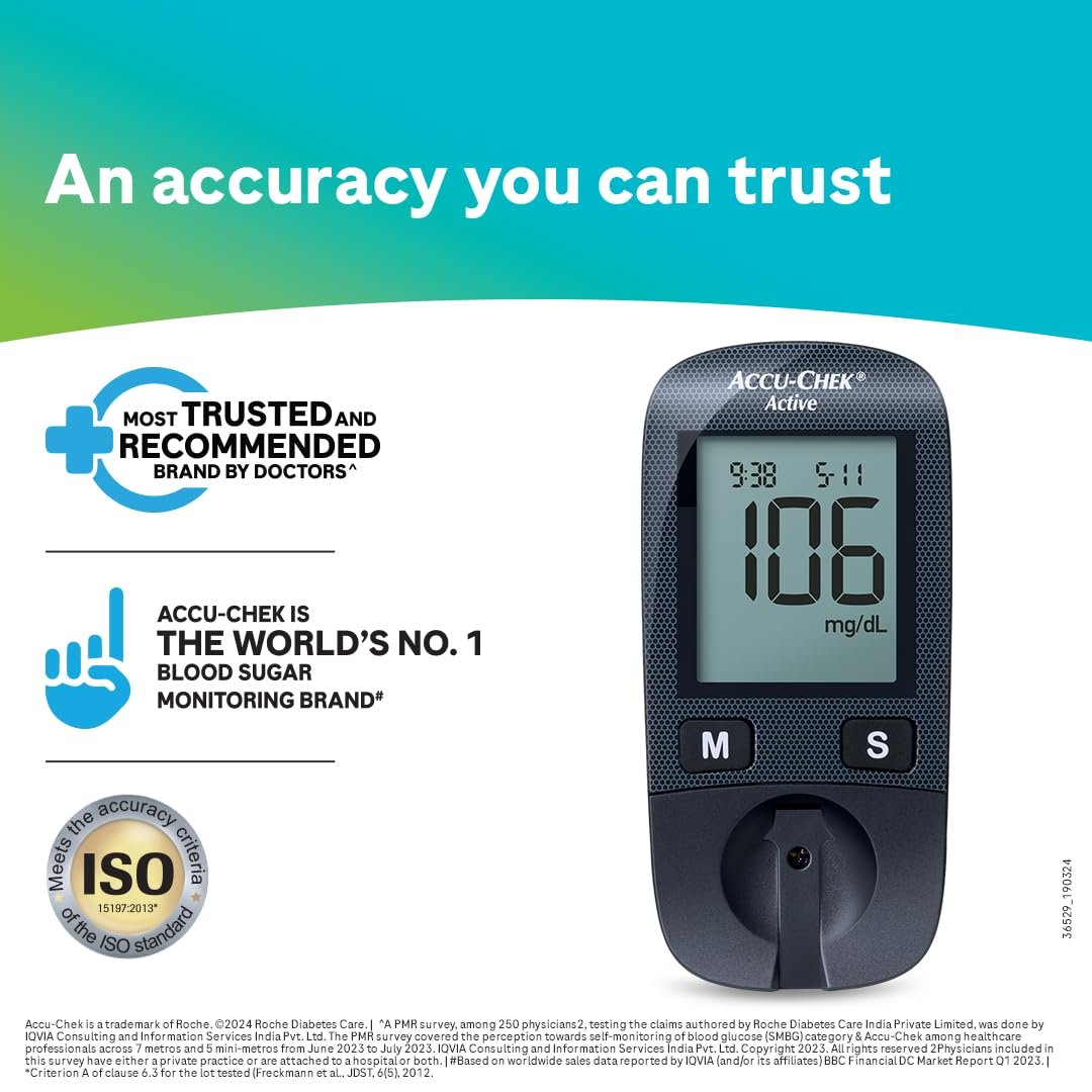 Accurate blood glucose measurement The Accu-Chek Active Glucometer is one of the most accurate systems and it fulfills ISO 15197-2013