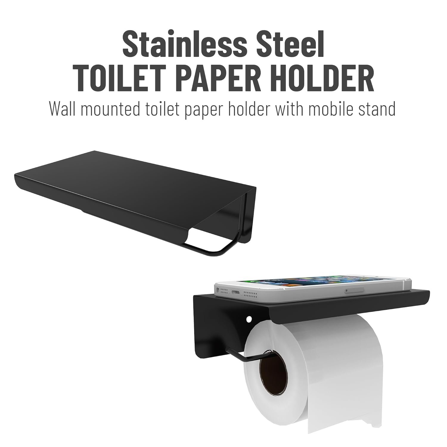 Our first in its type matt black toilet paper holder with mobile stand for your daily needs
