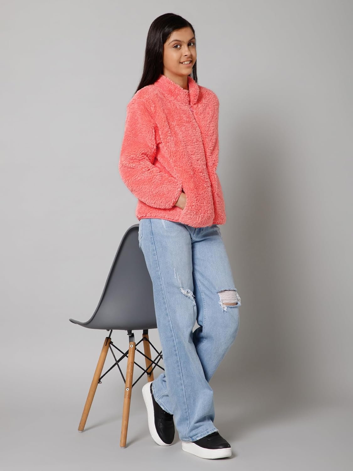 Alan Jones Clothing Girl’s Polyester Fluffy Yarn Fleece Full-Zip Standard Length Jacket