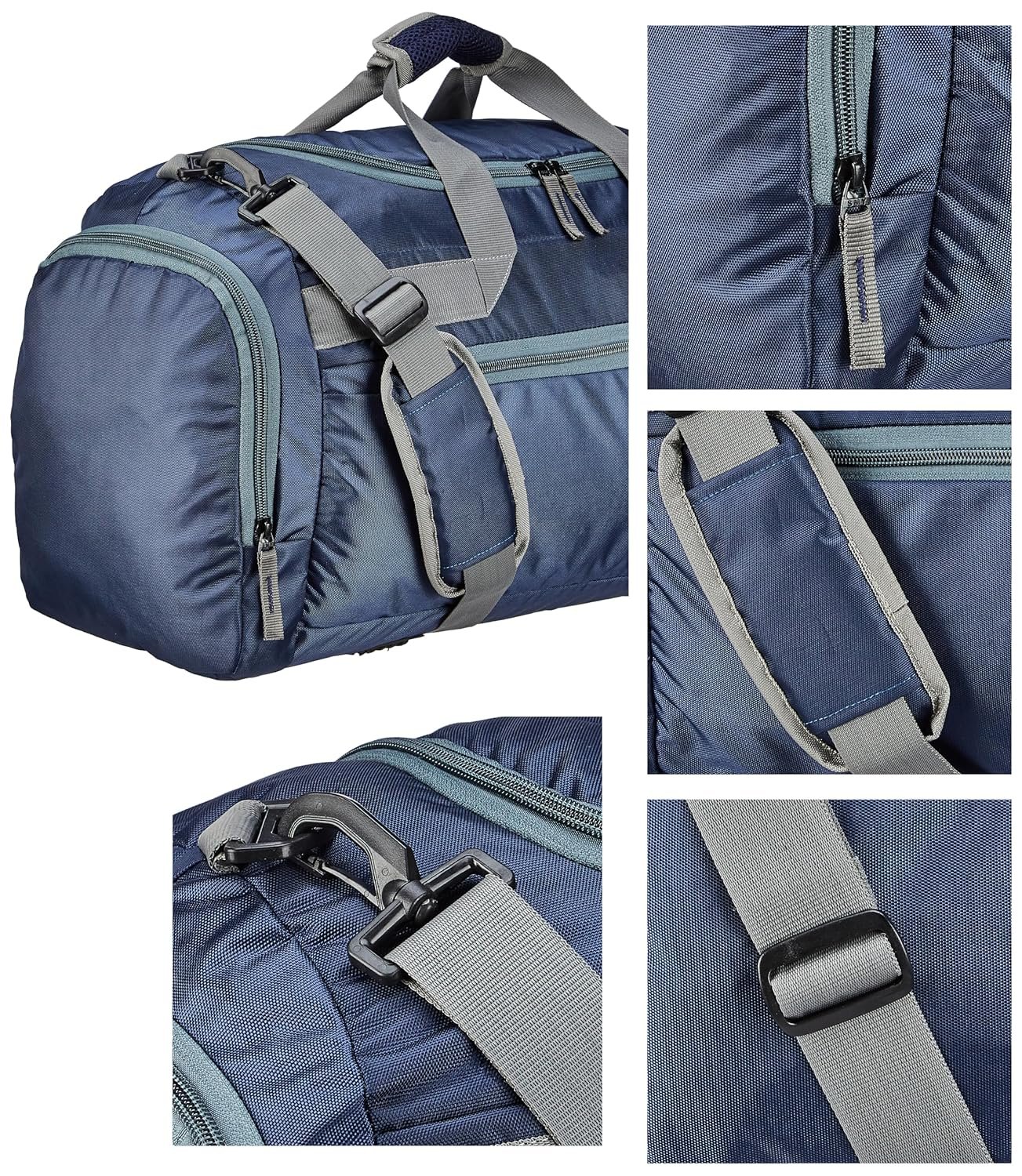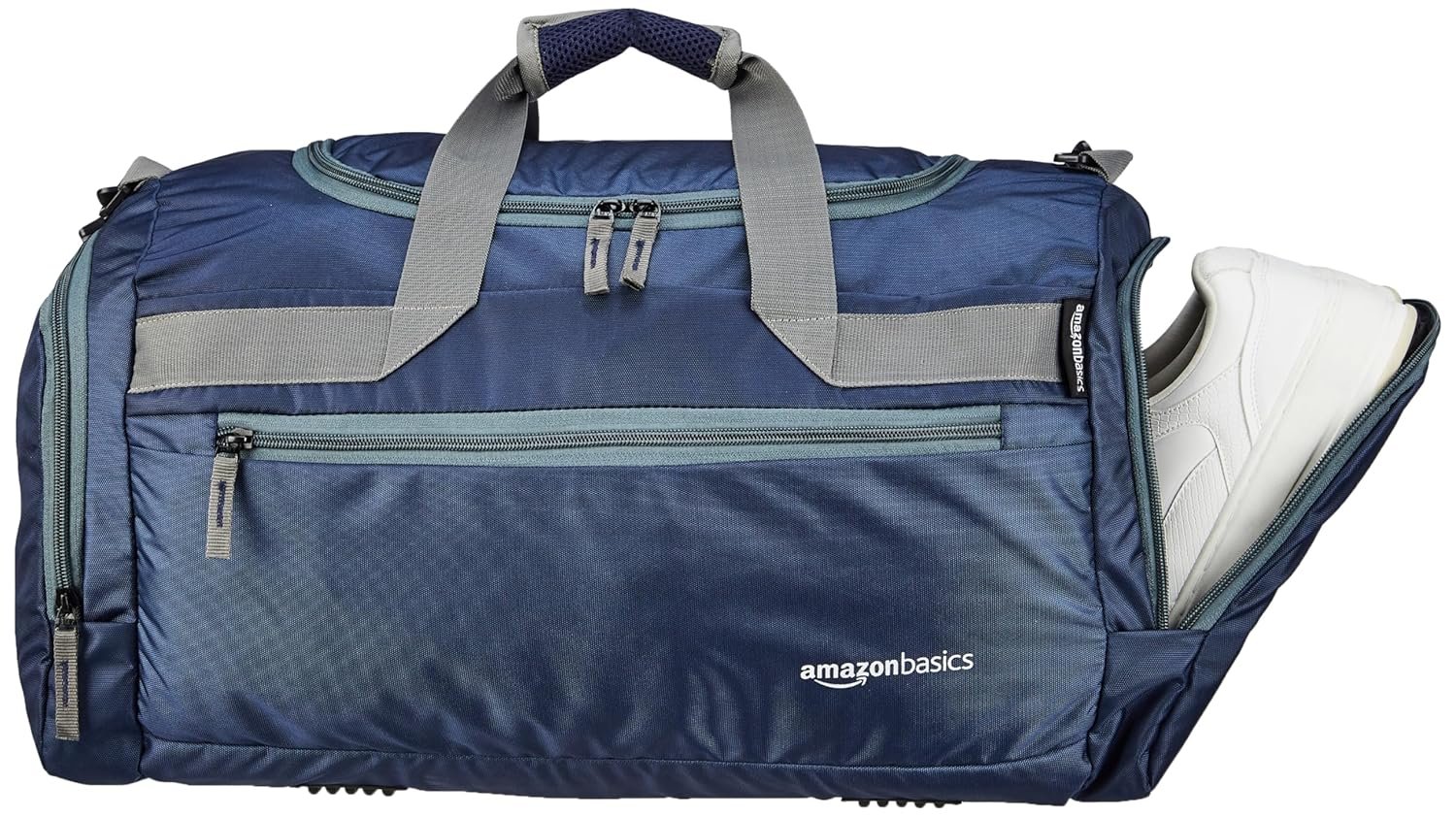 Introducing the Amazon Basics Multi-Utility Duffel Bag in a stylish navy blue colour. Perfect for all your travel, outdoor, sports and weekend activities, this versatile bag is sure to become your go-to choice. With 4 spacious compartments and a capacity of 40 litres, you can easily pack all your essentials without worrying about space constraints. The bag is designed with functionality in mind – it features 2 large zipper compartments, 1 zip pocket in the front, and 2 pockets on the sides with zipper closures. This allows you to keep your items organized and easily accessible. Made from high-quality nylon and polyester material, the duffel bag is durable and built to last through all your adventures. Carry it comfortably with either the short handle or the shoulder strap depending on your preference. The short handle provides a firm grip while the adjustable shoulder strap allows for hands-free carrying. Lightweight at only 600 grams, this duffel bag won’t weigh you down. Whether you’re going away for an overnight stay or heading to the gym or shopping, this multi-utility duffel bag has got you covered. Its compact dimensions of 53.34 L x 22.86 W x 27.94 H cm make it easy to carry around while still providing ample storage space. Invest in the Amazon Basics Multi-Utility Duffel Bag today and experience convenience like never before!