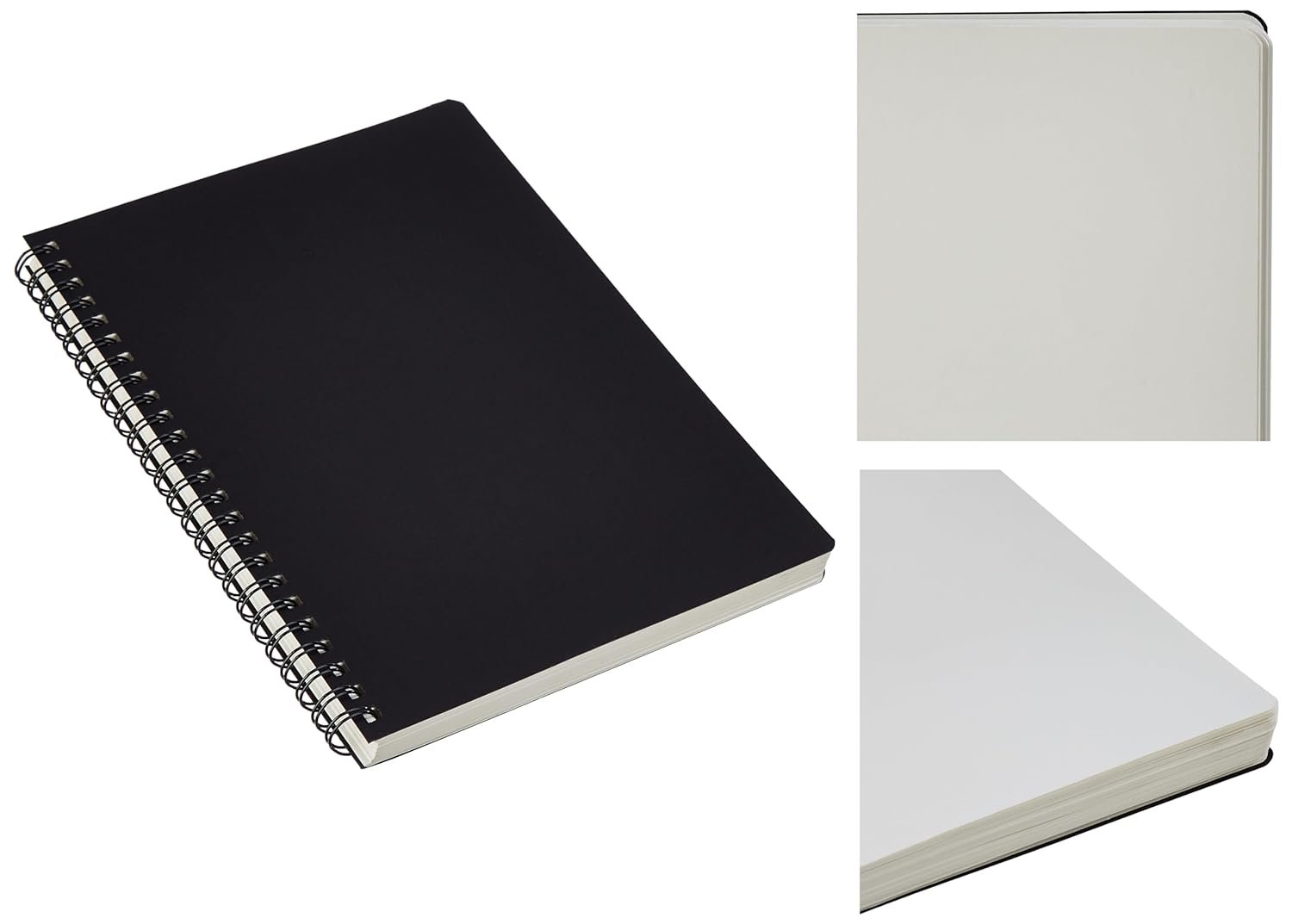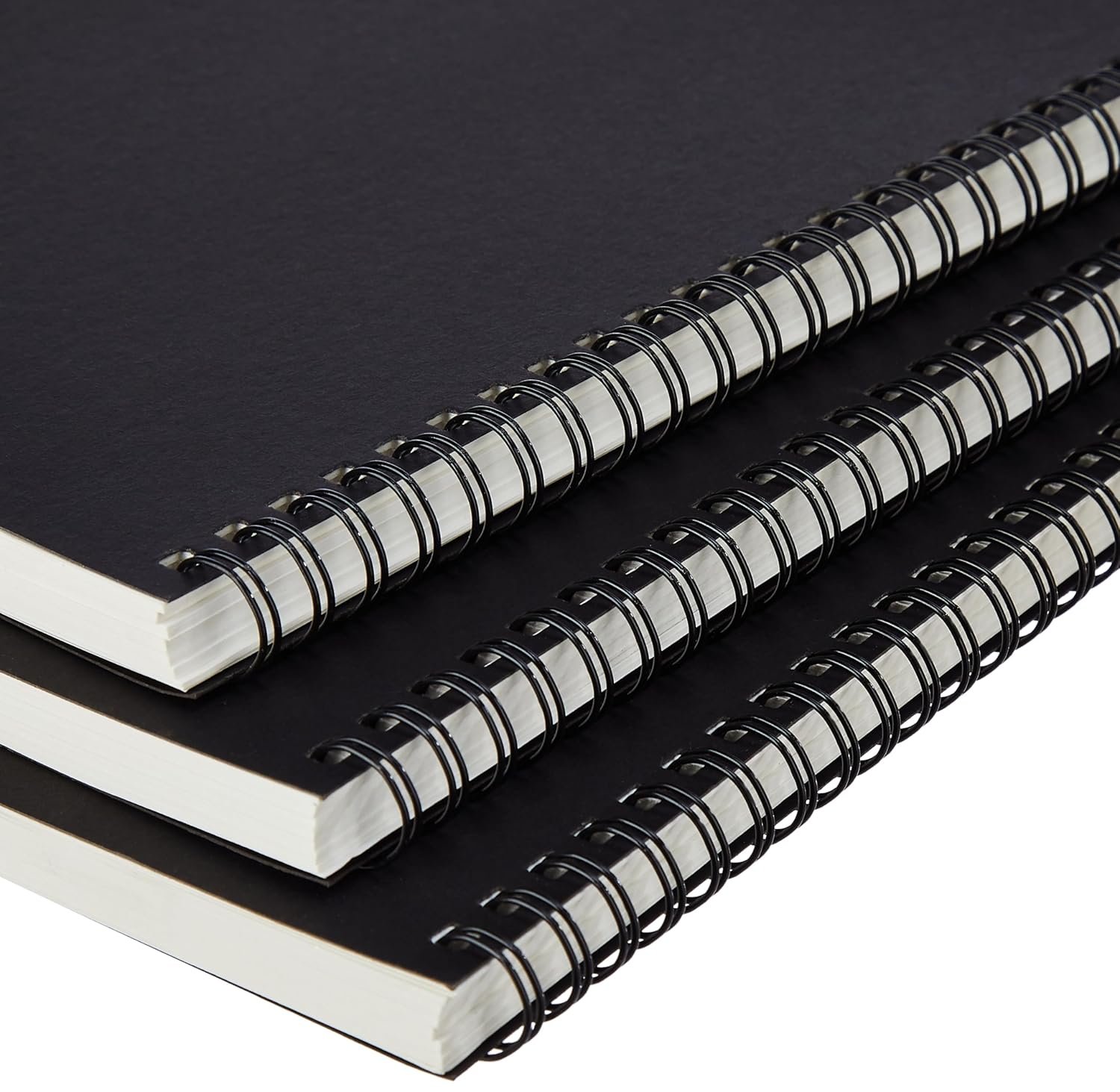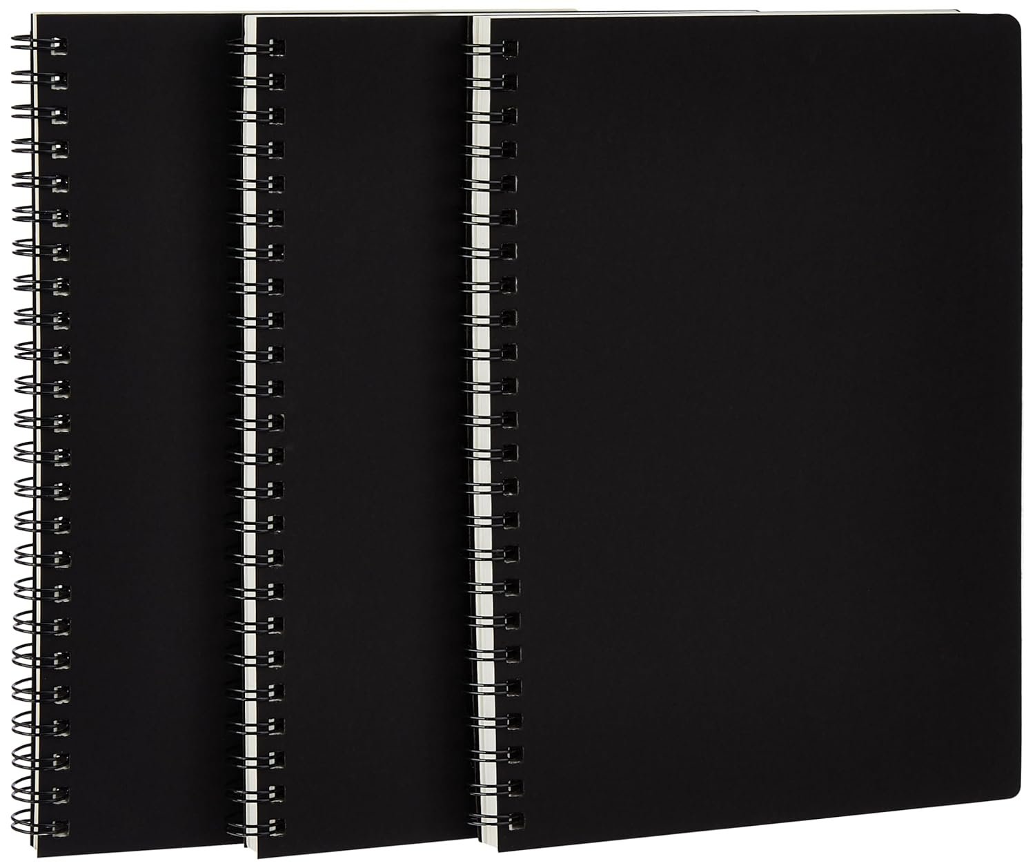 Package comprises 3 A5 metal spiral notebooks featuring black covers, ideal for college use and organization.
