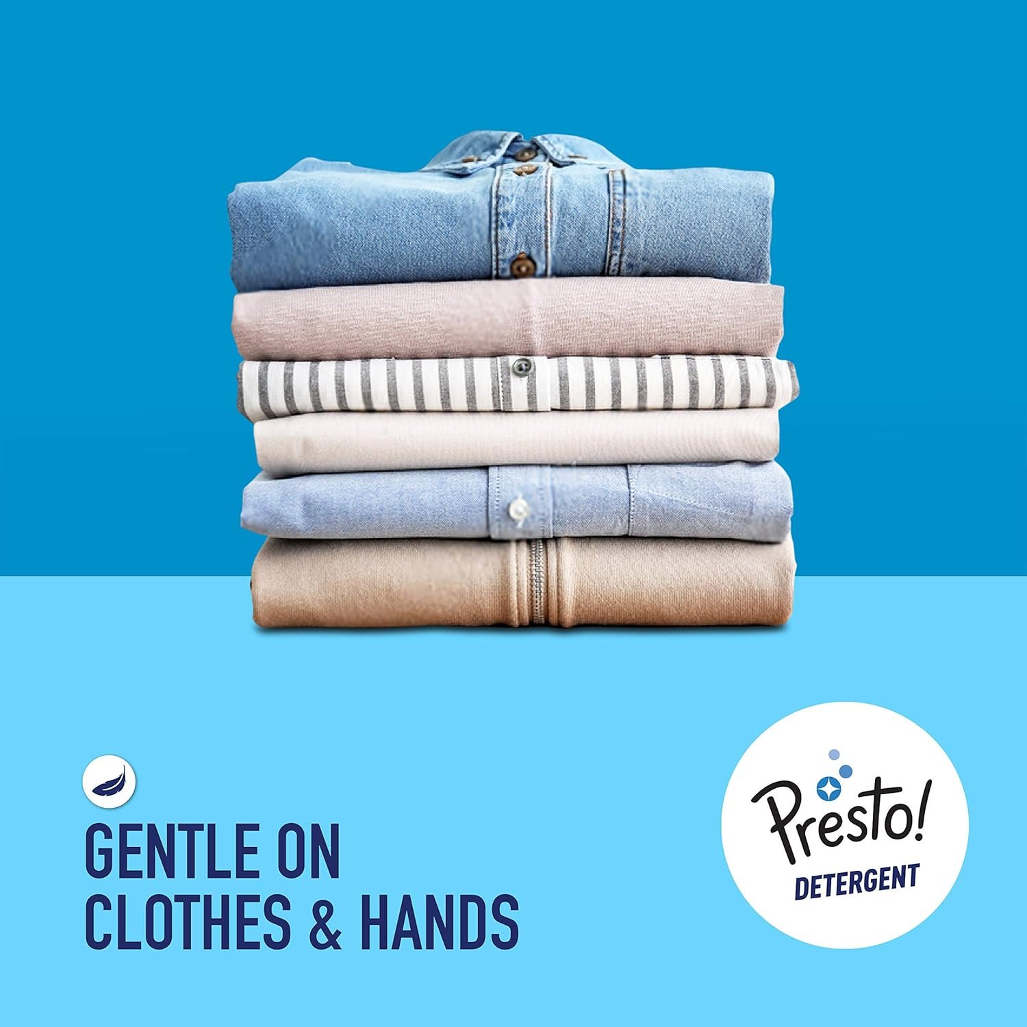 Presto! detergent combines surfactants and enzymes for an effective wash; free from harsh chemicals