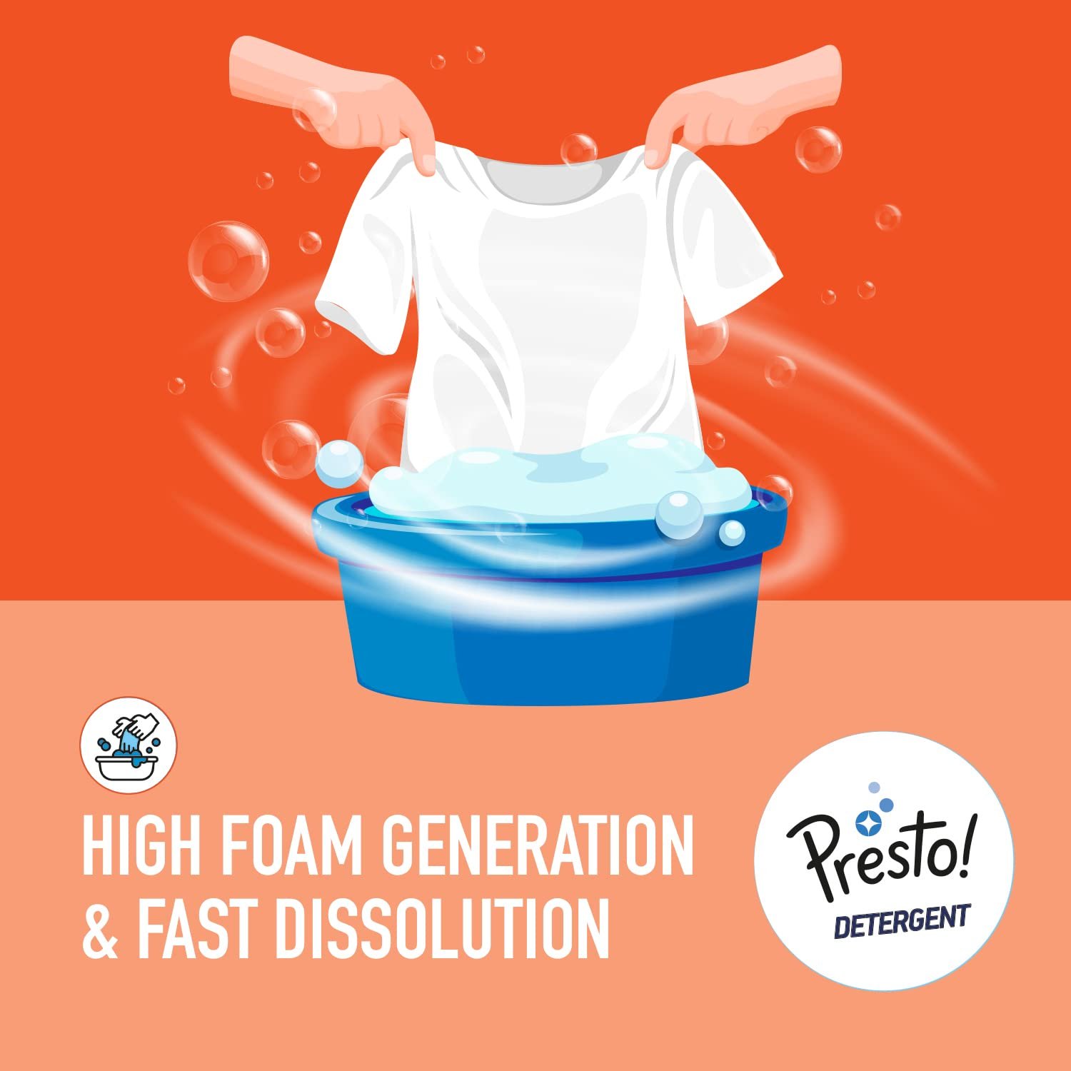 Introducing Presto! Total Wash Detergent Powder, specially designed to tackle tough stains with ease. This powerful powder effectively removes stubborn marks caused by coffee, tea, turmeric, mud, and curry stains. Say goodbye to tedious scrubbing and harsh chemicals as this detergent is gentle on your hands and safe for regular use with its bleach-free formula. Not only does it effortlessly remove stains but also leaves your fabrics with a refreshing floral fragrance. It’s high foam generation enables easy washing even in hard water, ensuring a thorough clean every time. Worried about your clothes losing their colour? Worry no more as this detergent doesn’t affect the fabric’s colour. Experience the convenience of hand-washing or semi-auto-washing with Presto! Total Wash Detergent Powder. For hand-washing, add 1 scoop of powder in a water tub and stir until foam appears. Soak clothes if needed and wash as usual. For machine wash, add 2 scoops directly in the dispenser and wash as usual. With its quick-dissolving formula, it works perfectly in both soft and hard water conditions. Don’t compromise on quality; choose Presto! Total Wash Detergent Powder for a superior cleaning experience. This pack contains 4 kg of detergent powder which is suitable for front-load machines or top-load machines up to 6 kg capacity. Make laundry day effortless with Presto! Total Wash Detergent Powder.