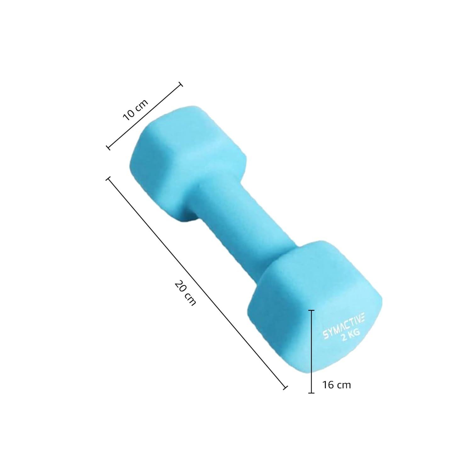 Amazon Brand – Symactive Neoprene Coated Fixed Dumbbell for Gym Exercises, Set of 2, 2 Kg, Light Blue