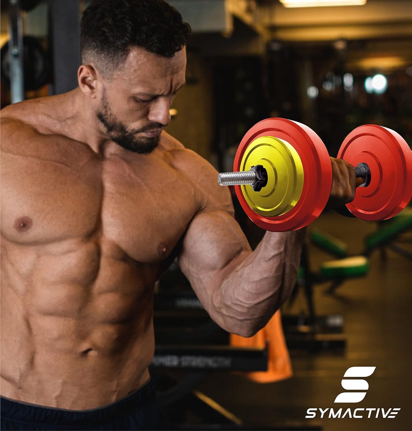 30 kg of pure rubber weight coloured (2.5 kg yellow x 4 = 10 kg + 5 kg red x 4 = 20kg),1 x 3 feet plain rod + 1 x 3 feet curl rod and 2 x 14 inch dumbbell rods, 4 Locks and clippers comes with the rodsTRUE,The home gym set is a perfect muscle builder. It will be your go-to strength-bulding equipment to allow you to achieve your fitness goals. The gym set helps build muscle power, improve their strength and burn excess fat.,This is suitable for all types of customers – beginner level to advanced workout enthusiasts and can be used by men & women alike.The entire set of weights & strength equipment is made in India..
