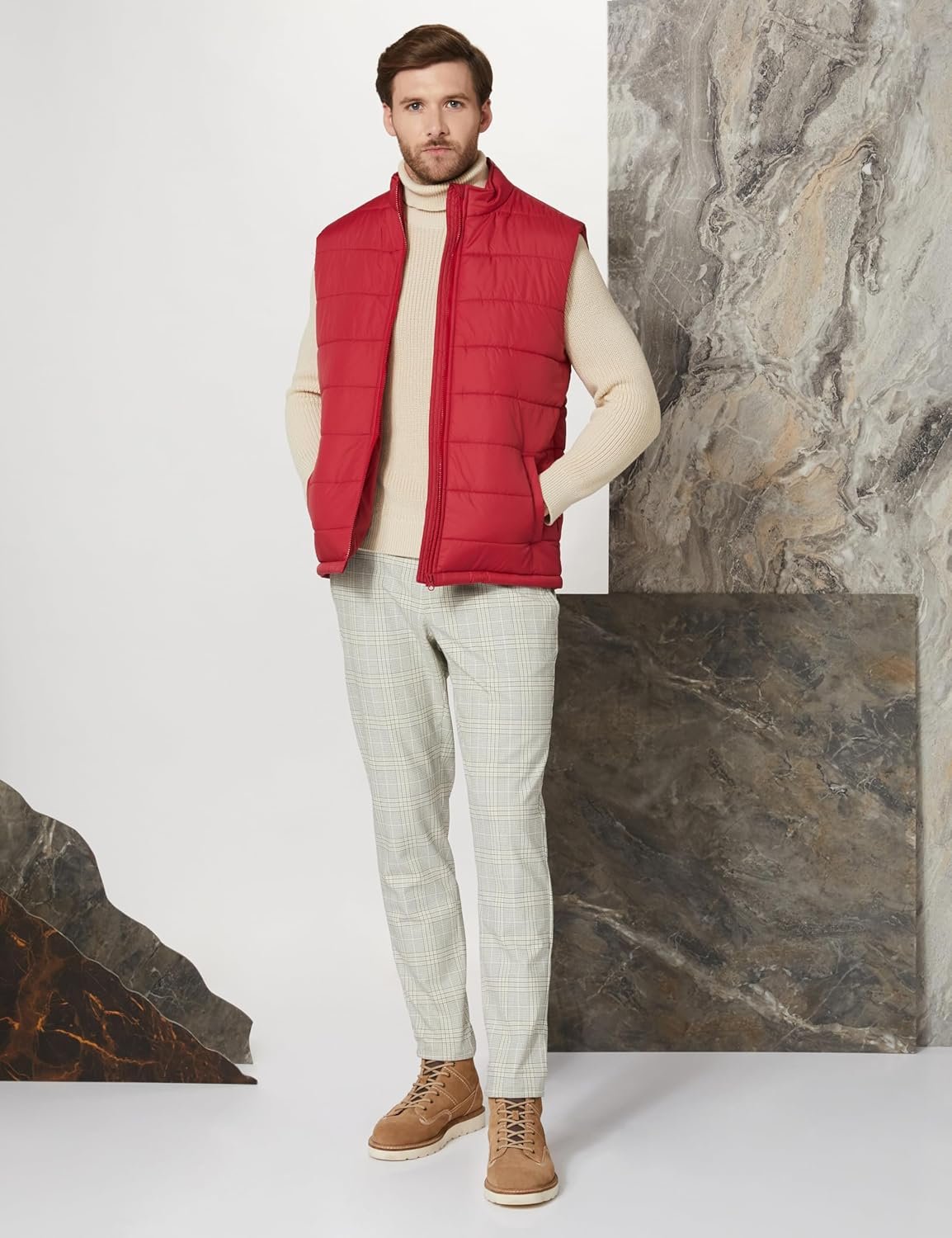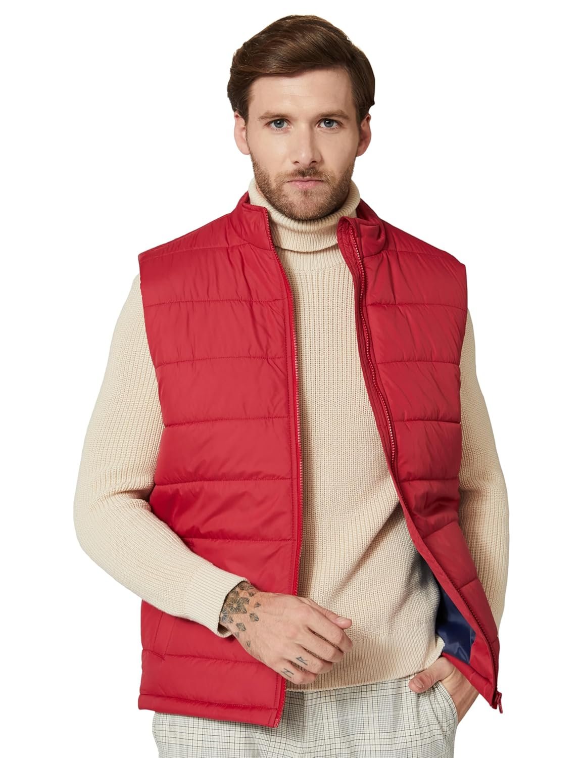 Amazon Brand – Symbol Men Polyester Quilted Sleeveless Standard Length Bomber Jacket