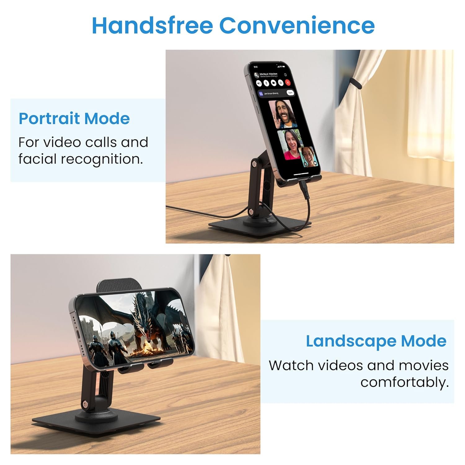 Achieve the optimal viewing position with Twistand 360’s adjustable angle and height, ensuring comfort and customization for your smartphone, whether you’re watching, reading, or video chatting.