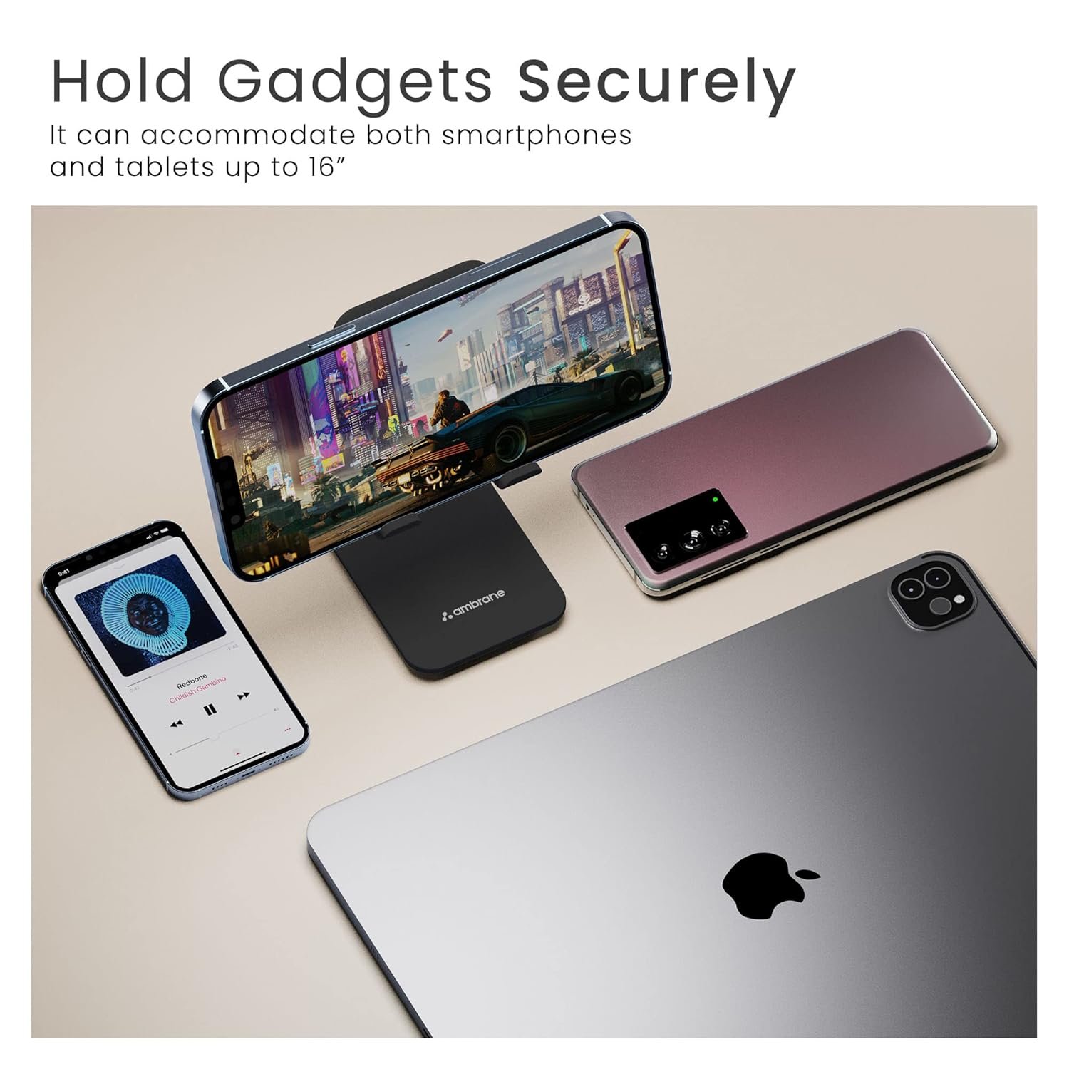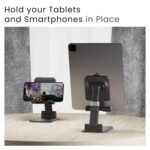 Ambrane Tablet & Mobile Holder for All Smartphones, Tabs, Kindle, iPad Mobile Holding Tabletop Stand, Height Adjustment, Foldable Design, Multipurpose, Anti-Skid Design (Twistand +, Black)