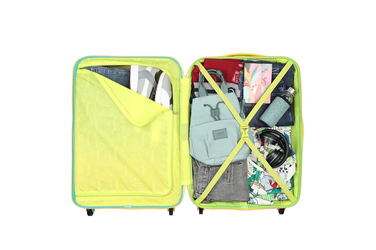 American Tourister Polypropylene (PP) Amt Splash Sp66Cm Coral/Teal Multi Color Carry-On Luggage Hard Shell 4 Spinner Wheel Luggage with Tie Down Strap & Complete Lining, H-66 Centimeters