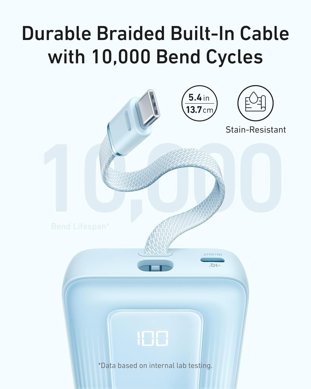 Ready for Endless Use: Crafted for durability, the 5.4-inch built-in USB-C cable is tested to endure over 10,000 bends, ensuring it stands up to the rigors of everyday use.