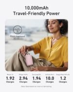 Mighty Compact Power: This compact and powerful 10,000mAh power bank provides up to 2 full charges for an iPhone 15, 1.94 charges for a Samsung S24, and 10 charges for AirPods Pro 2, making it ideal for travel.