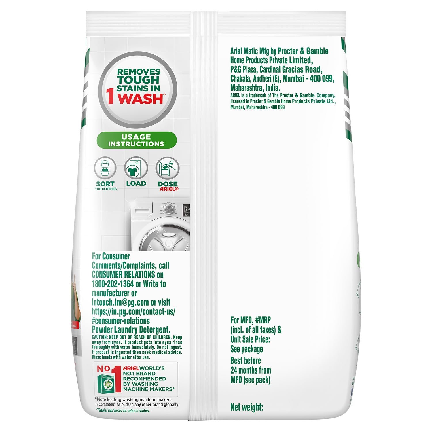 Ariel is the no. 1 brand recommended by washing machine manufacturers like LG, Whirlpool, Panasonic, etc.