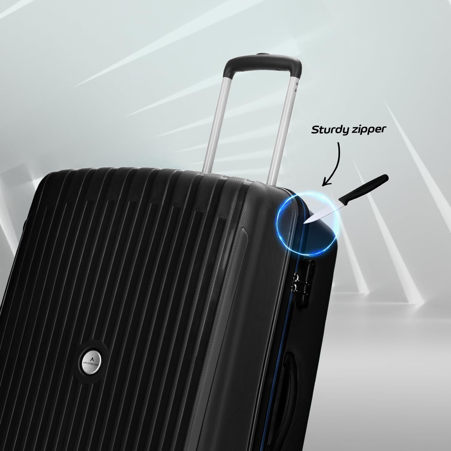 Aristocrat Polypropylene Armstrong 3 Pc Set 4 Spinner Wheels Trolley Bags for Travel Hardcase Luggage, Lightweight Bag with Combination Lock (Black)(55, 65 & 75) Cm, Small,Medium & Large