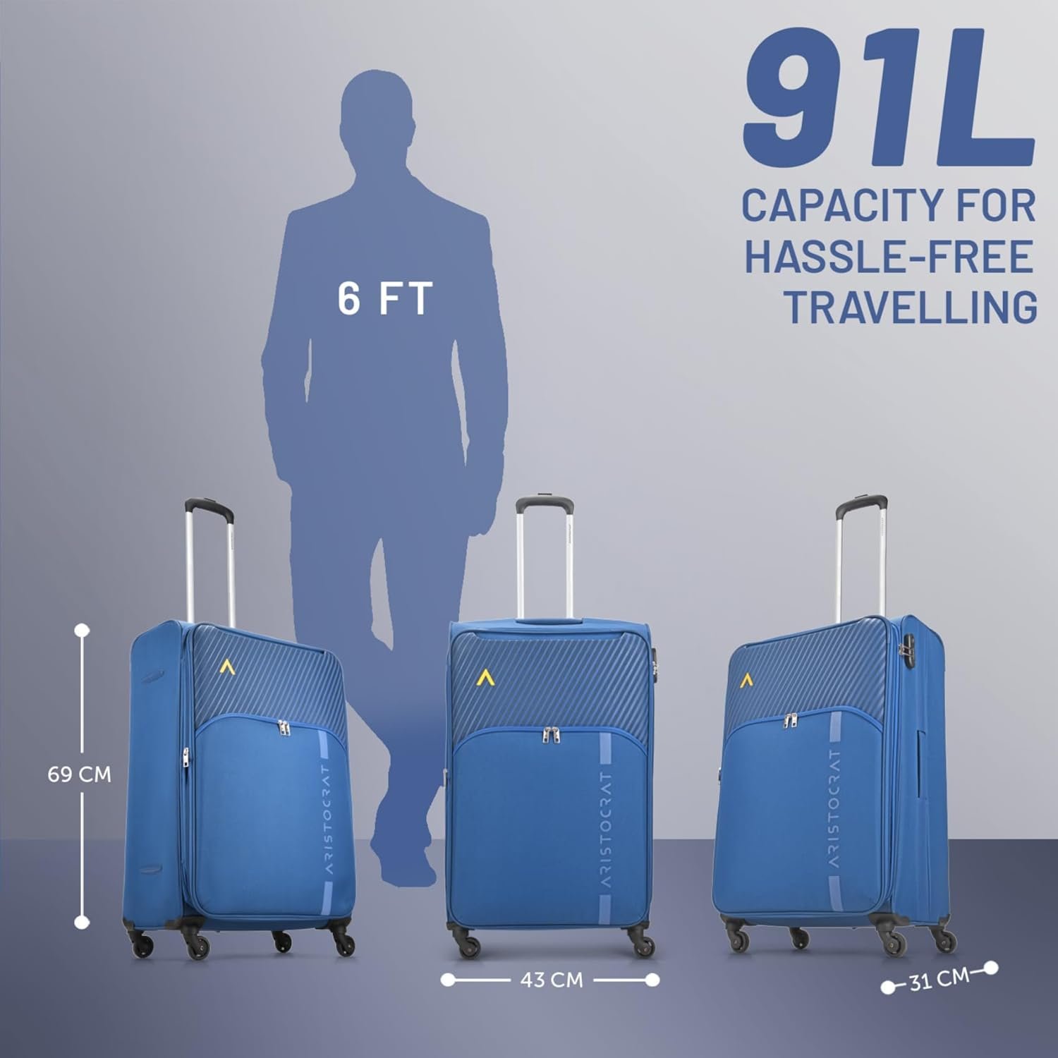 DURABILITY & LONGEVITY :Unleash adventures with Aristocrat AIRPLUS: stylish, secure, and durable softcase luggage.