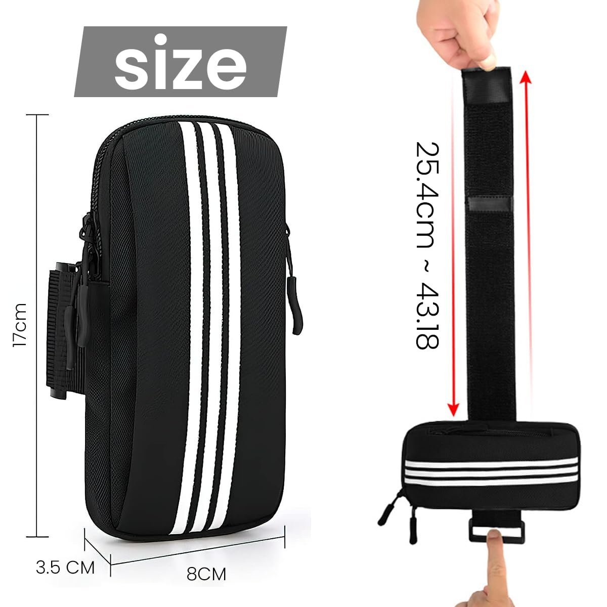 FASHION DESIGN: This sleek armband phone bag boasts its simple and classic design which is popular among exercisers. This fashionable armband phone bag is also a nice gift for all outdoor enthusiasts, perfect for anyone values the fashion and utility of accessory.