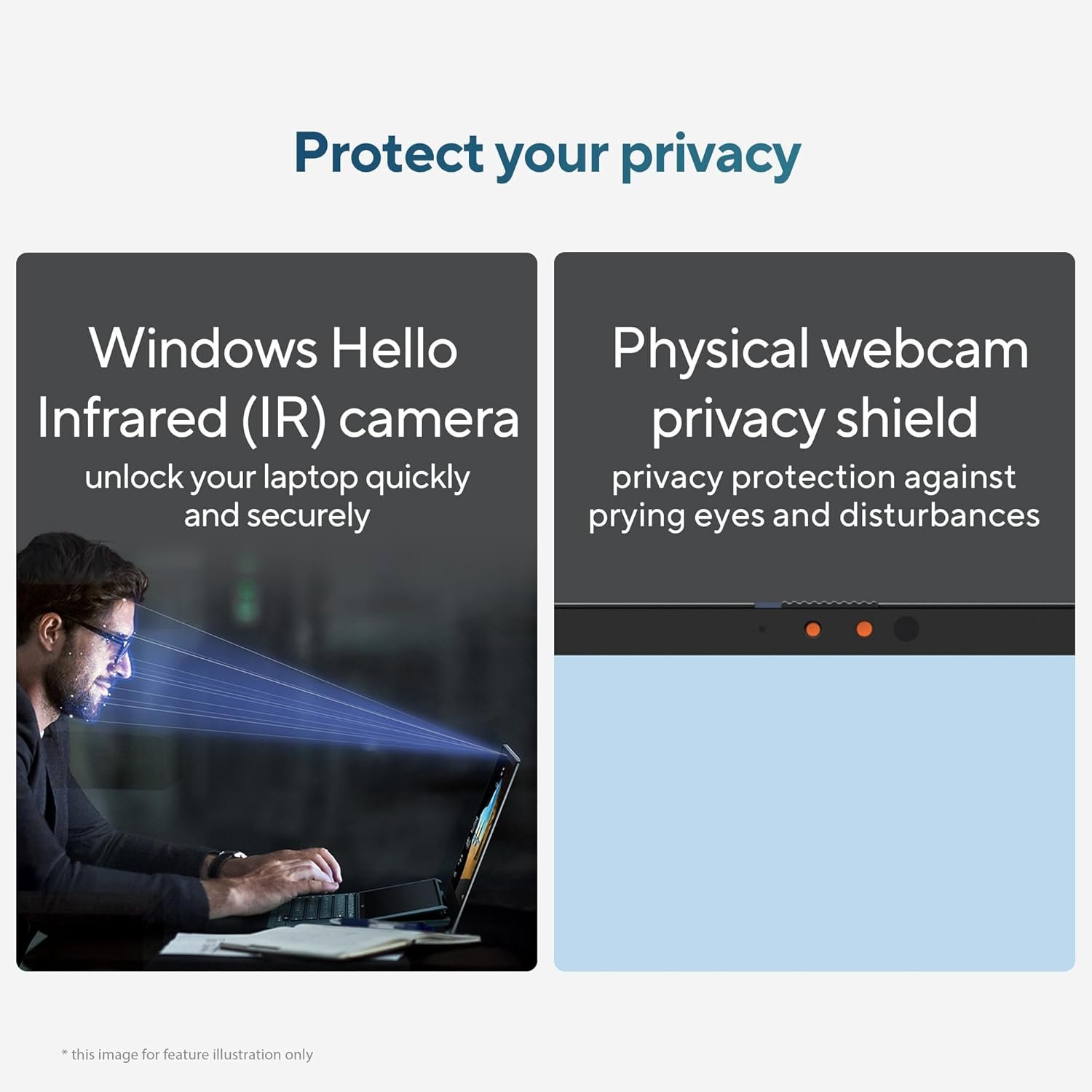 Battery : 75WHrs, 2S2P, 4-cell Li-ion, Front-facing camera : FHD camera with IR function to support Windows Hello ; With privacy shutter