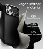 Stylish design made from textured grain leather, with an enhanced aluminum camera frame for full protection and raised bezel for screen defense.