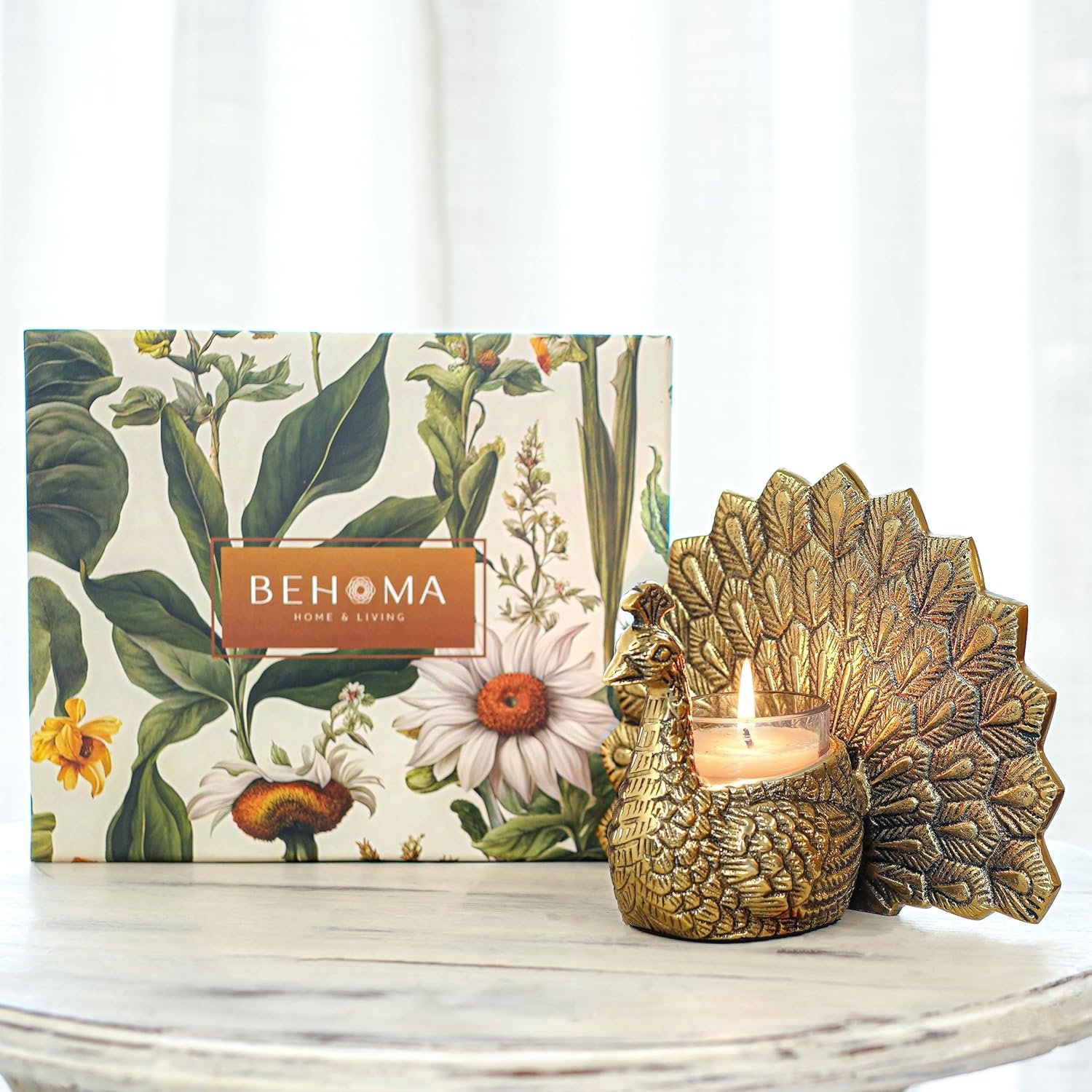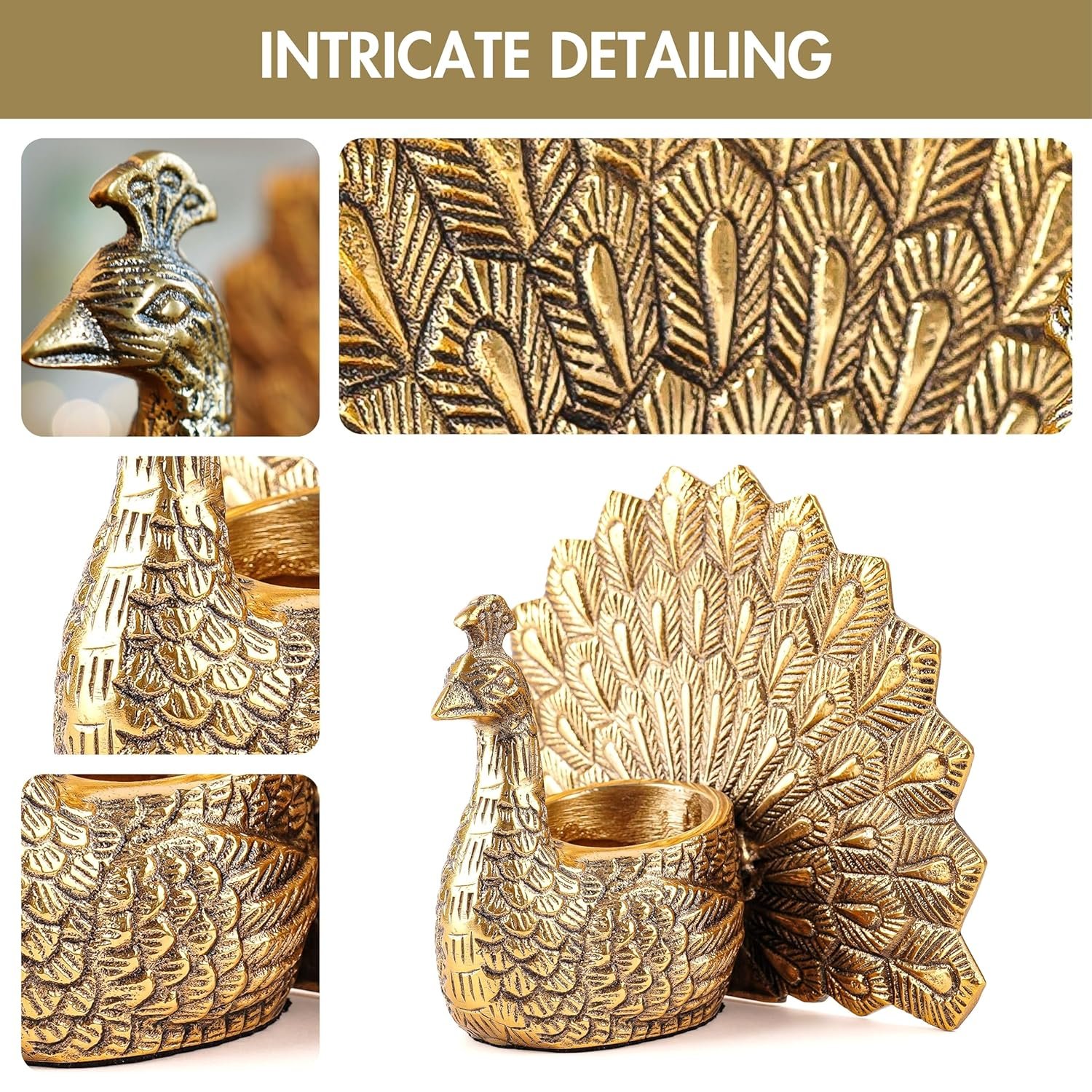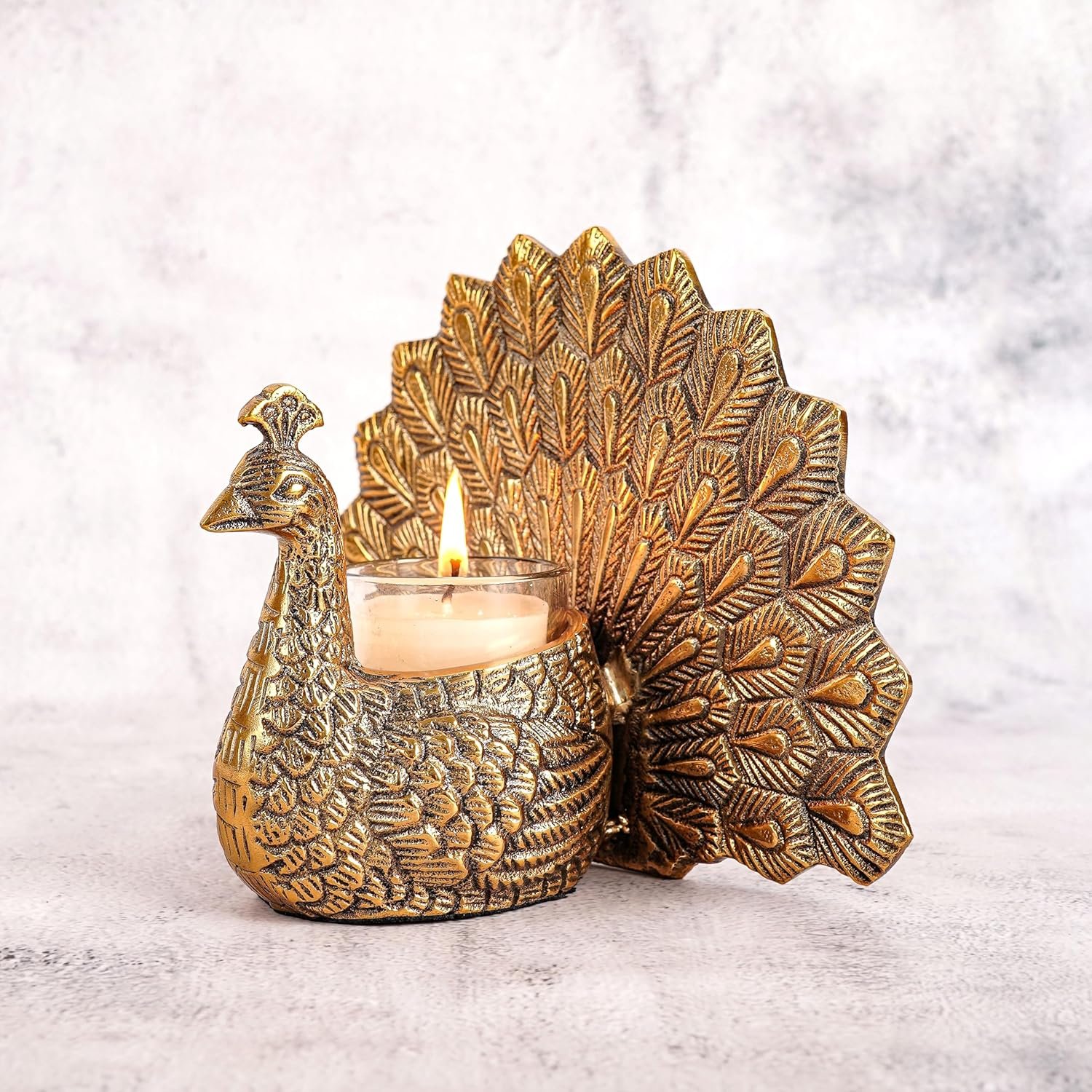LUXURIOUS DESIGN: The intricate metal peacock and votive enhances the ambience, making it an ideal decorative item for any home. Elevates home décor with its timeless design, creating a warm and inviting atmosphere for celebrations.