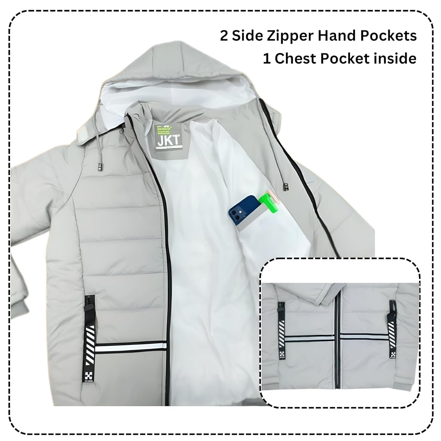 Discover our full-sleeve puffer bomber jacket for men, designed to combine comfort and contemporary style. Crafted from durable nylon, this jacket provides lightweight warmth and insulation, making it perfect for chilly days.