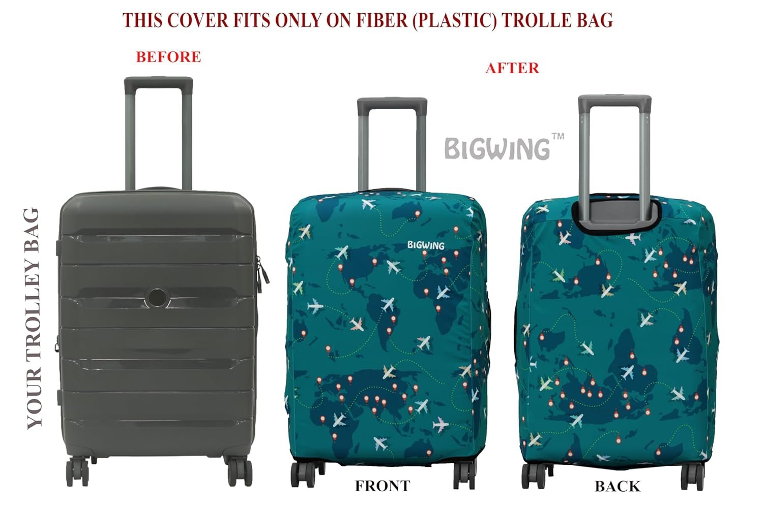 With So Much Enthusiasm And Pride Here ASPIRE ENTERPRISE Introduces BIGWING Brand Polyester Fabric Recyclable Eco-Friendly FIBER (PLASTIC) Trolley Bag Cover That Helps You To Protect Your Luggage Trolley Bag While Travelling From Dust And Scratch And It Is Easily Recognisable In Crowd Due To Our Customized Unique Beautiful Eye Catching Designs. Made Up With Premium Four Way Polyester Spandex Mix Fabric Which Is Stretchable, Durable, Easy To Use And Washable. Dress Up Your Luggage With Our Unique And Beautiful Designed Printed Trolley Bag Covers And Make A Fashion Statement. We Have Tried Hard To Provide Our Valued Customer Best Quality In Category In Best Price. Proud To Deliver Our Valued Customer A MADE IN INDIA Product.