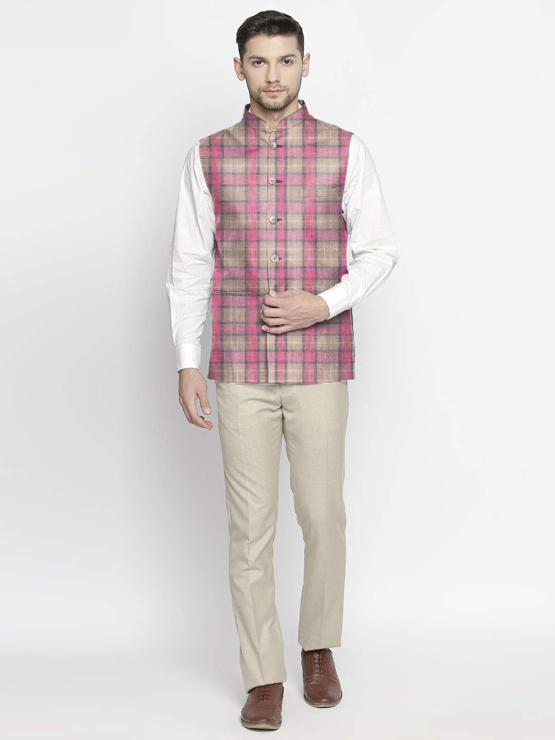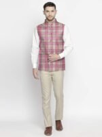 BLACKSMITH Premium Linen Nehru/Modi Jacket for Men – Wedding Nehru Coat (PINK,40)