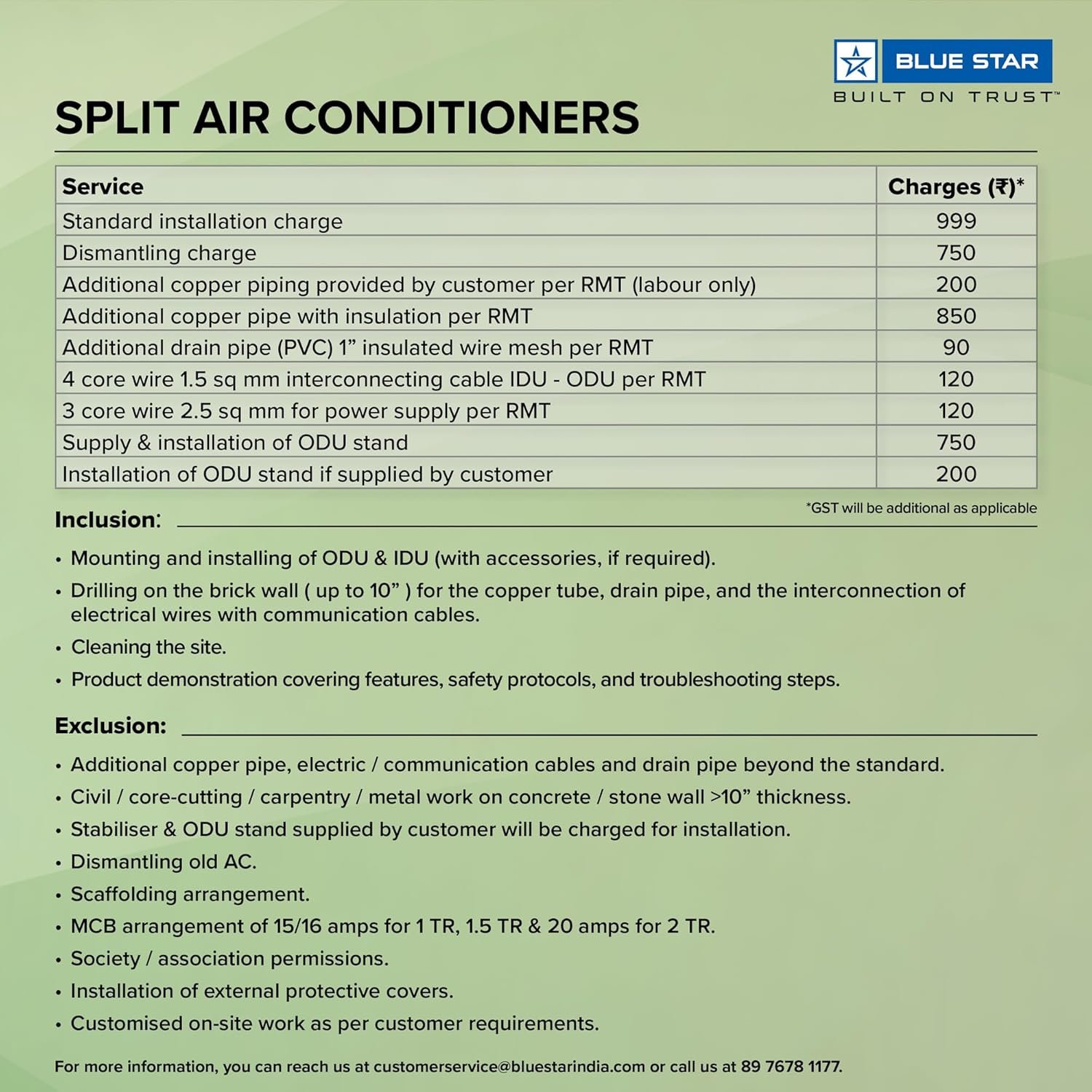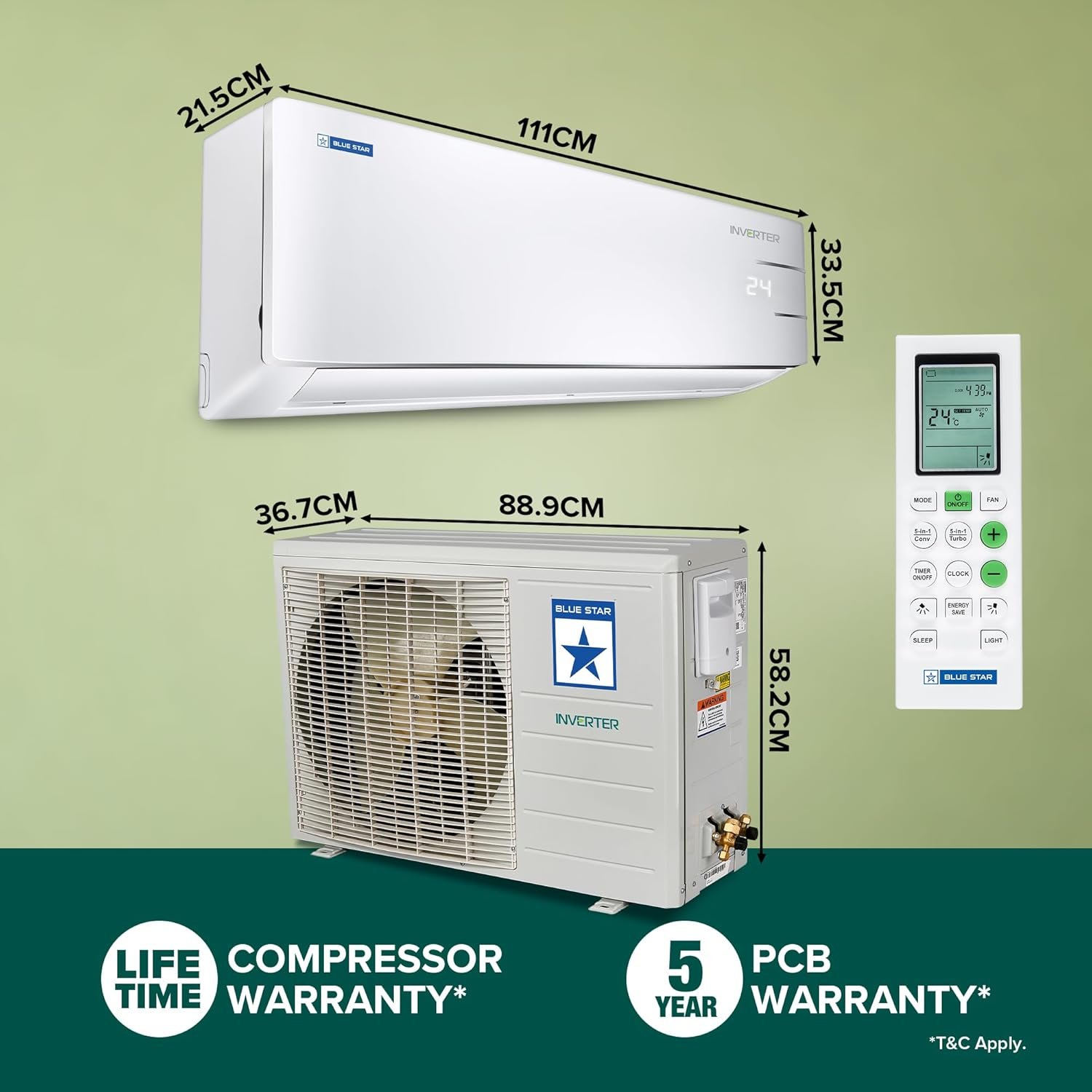 100% Copper: Blue Star AC’s condenser coil, evaporator coil, and connecting tubes are made of 100% copper, thereby ensuring reliable cooling performance and enhanced durability. Energy Saver: The Eco mode helps save on your electricity bills, while giving you comfortable cooling experience.