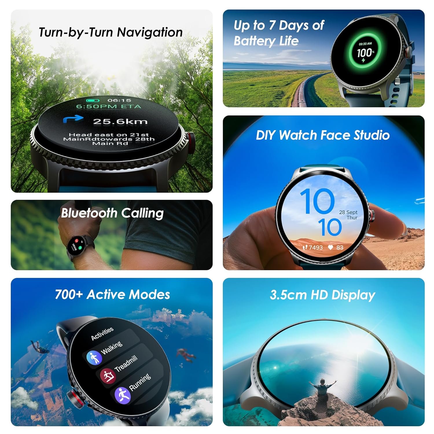 HD Display: Check the time, navigation routes, activity records, and more on the 1.39” (3.53 cm) TFT display. Designed with 240x240p resolution for high clarity, this watch makes it easy to view details round-the-clock.