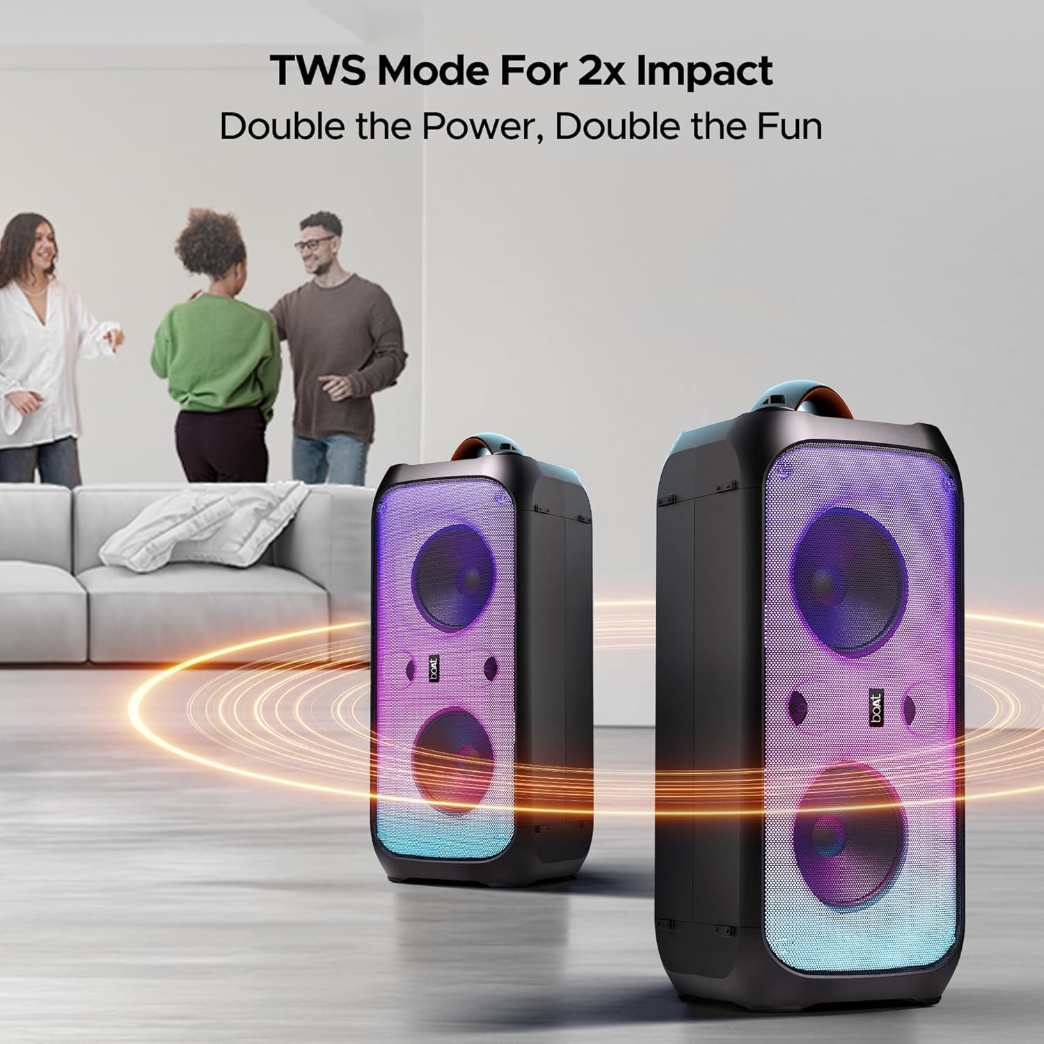 120 W boAt Signature Sound: Delve into the audio with the impactful 120 W boAt Signature Sound of the PartyPal 300 Speaker. Onscreen visuals will feel realistic with the enhanced audio of this speaker.