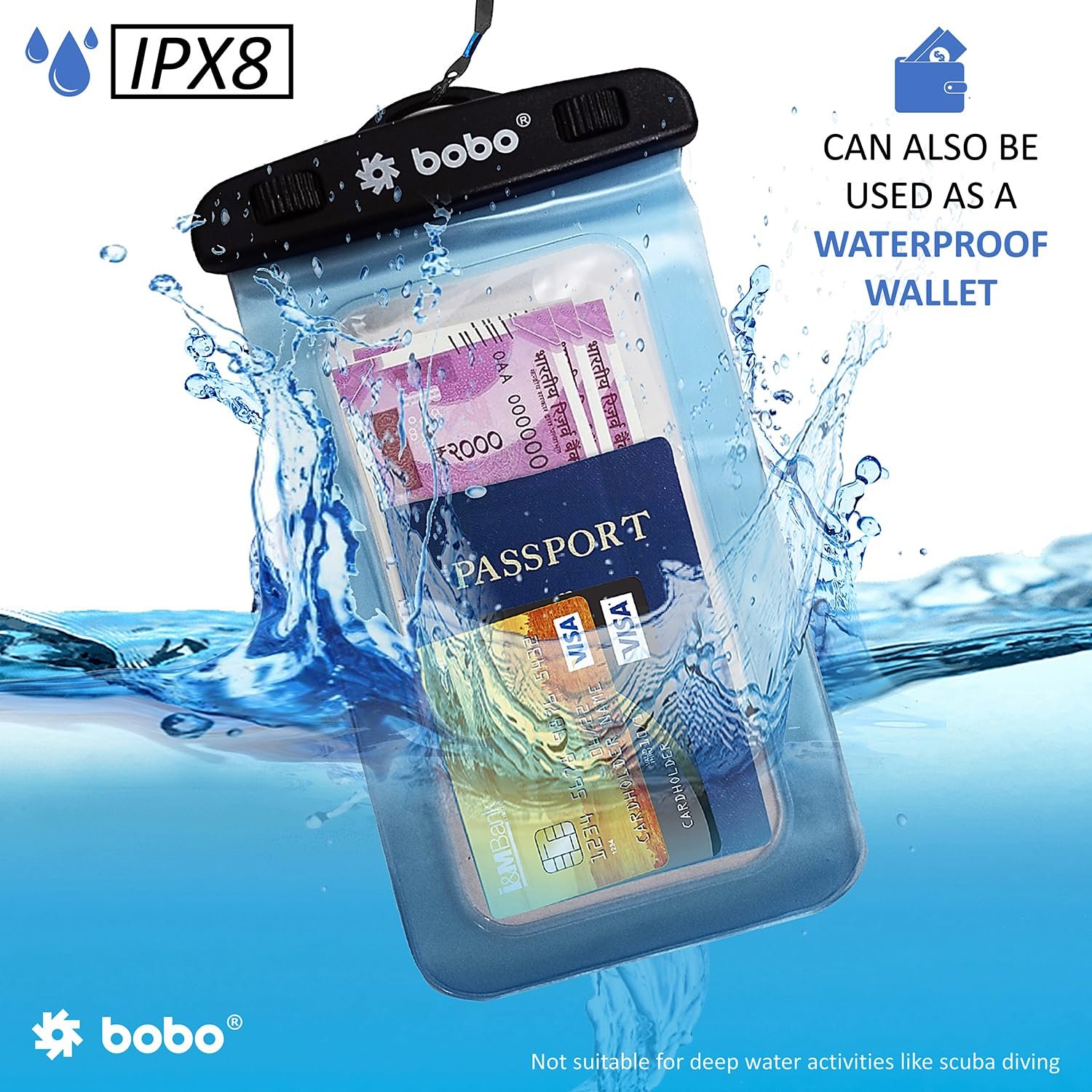 UNIVERSAL SIZE WATERPROOF CASE: This pouch fits all smartphones; It also doubles up as waterproof dry bag / wallet, to store credit card / [passport / cash etc. for beach, fishing, diving and water park activities.