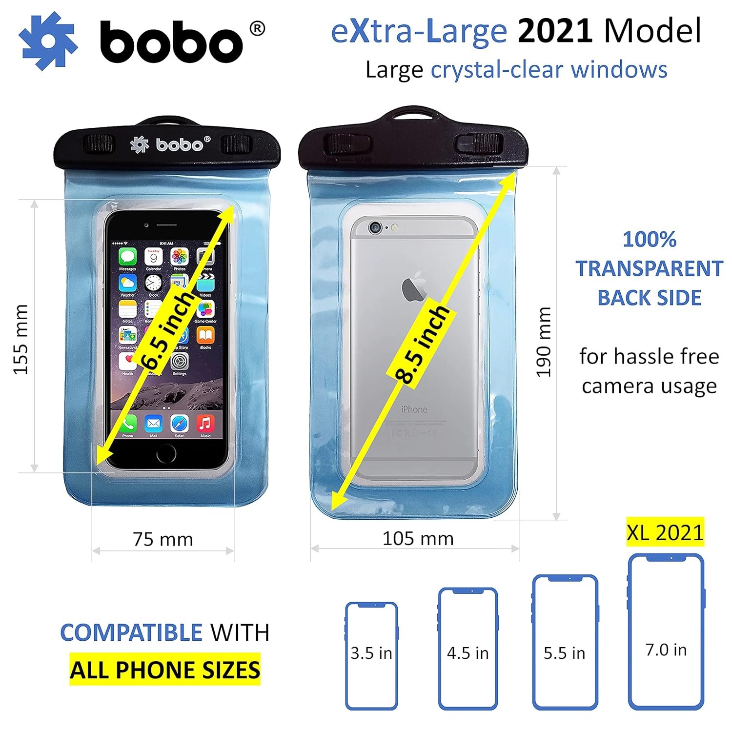 BOBO Universal Waterproof Pouch (Big Size) Cellphone Dry Bag Case for Smartphone – Blue (Pack of 1)
