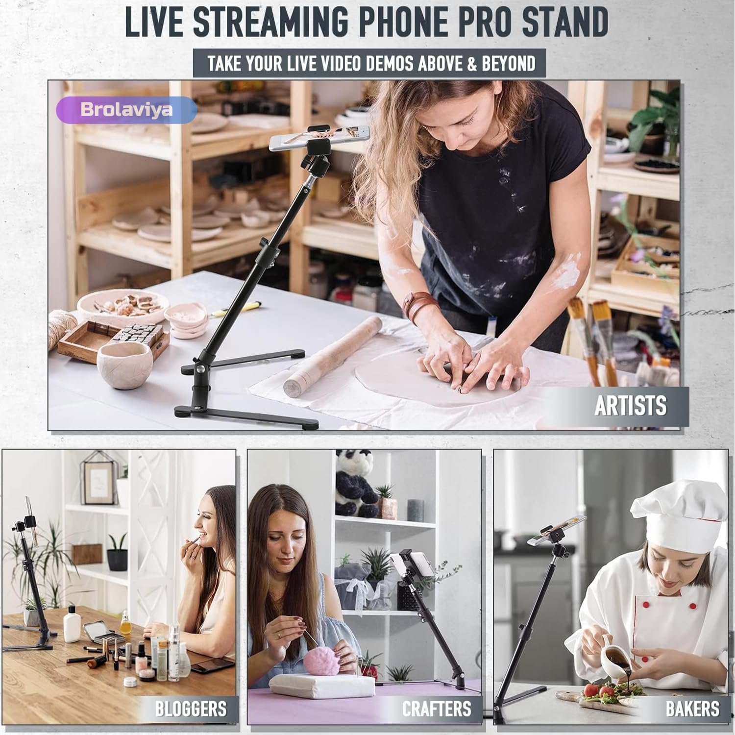 Brolaiya stand is ideal for vlogs, YouTube videos, live streaming, studio shoot, selfies, makeup, portrait photography, overhead shoot, meetings,etc.