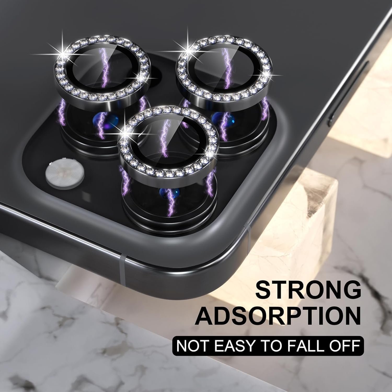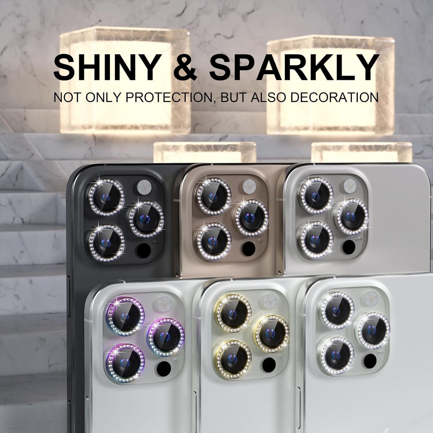 Stylish Texture: CASENED iPhone 16 Pro/16 Pro Max accessories make your phone look very stylish. The delicate and precise spiral pattern produces fascinating reflections, which protects your lens while making it a personalized decoration. Multicolor lens protector ring matches your style