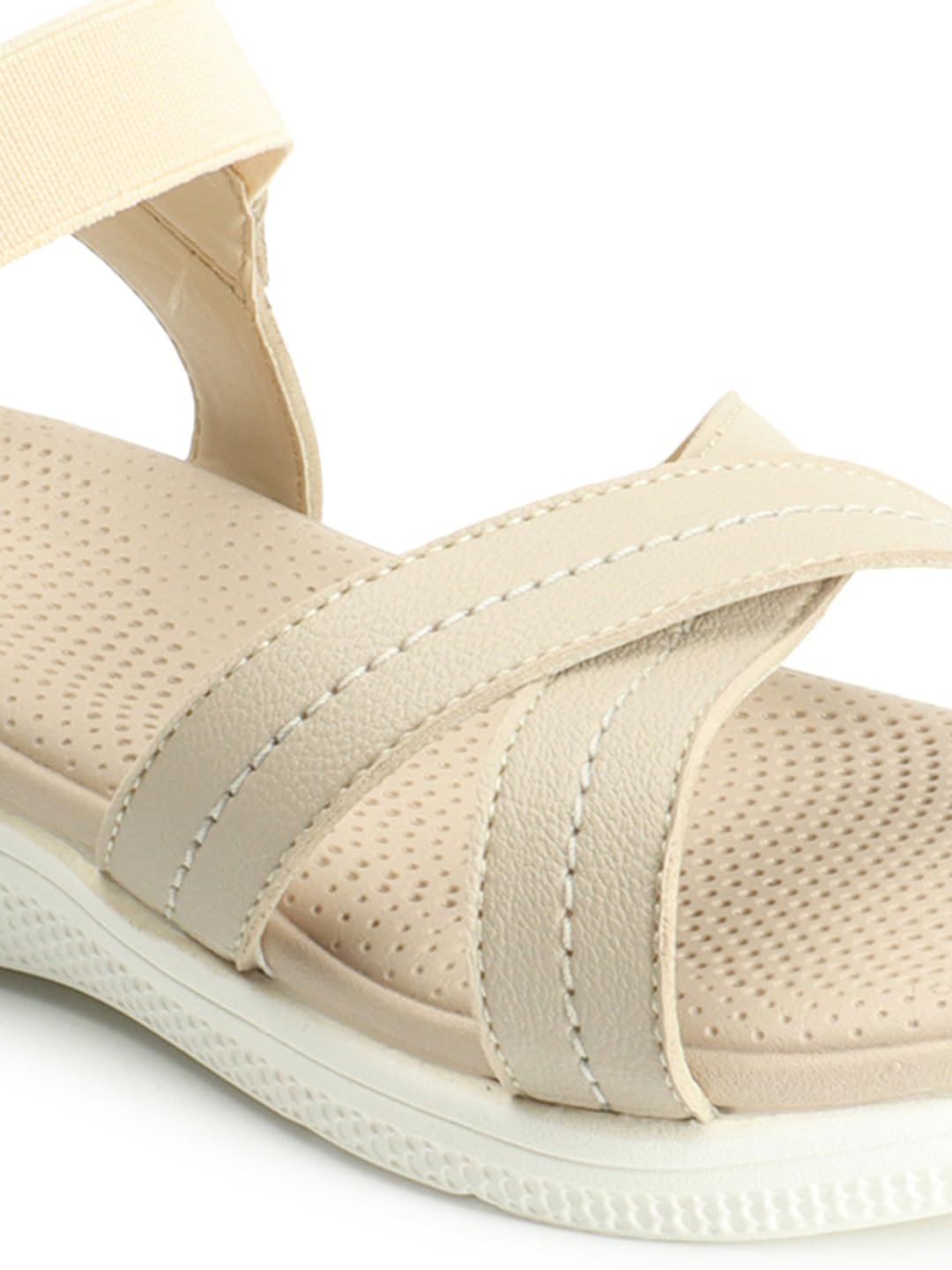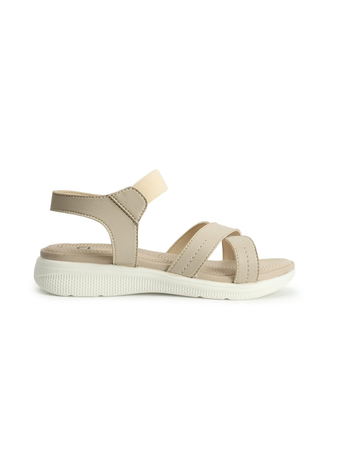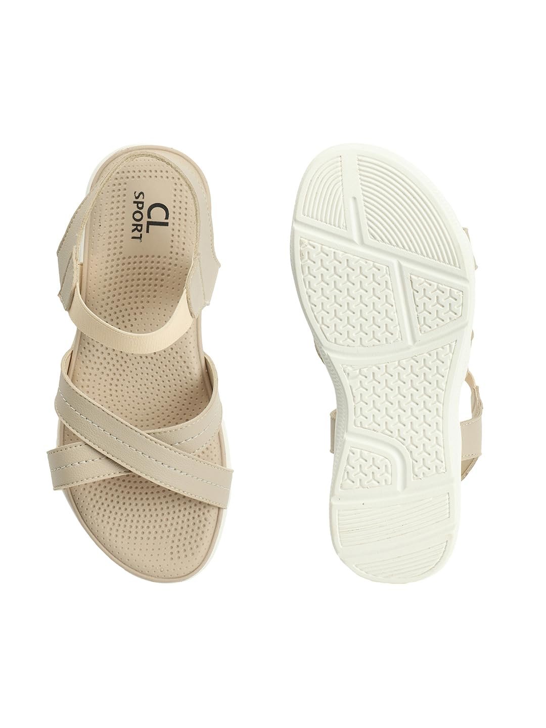 A Pair Of Carlton London Sports Women’s Fashionable Beige Color Solid Backstrap Sandals, this pair is perfect to give your quintessential dressing an upgrade.