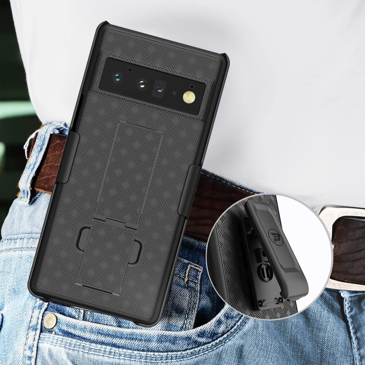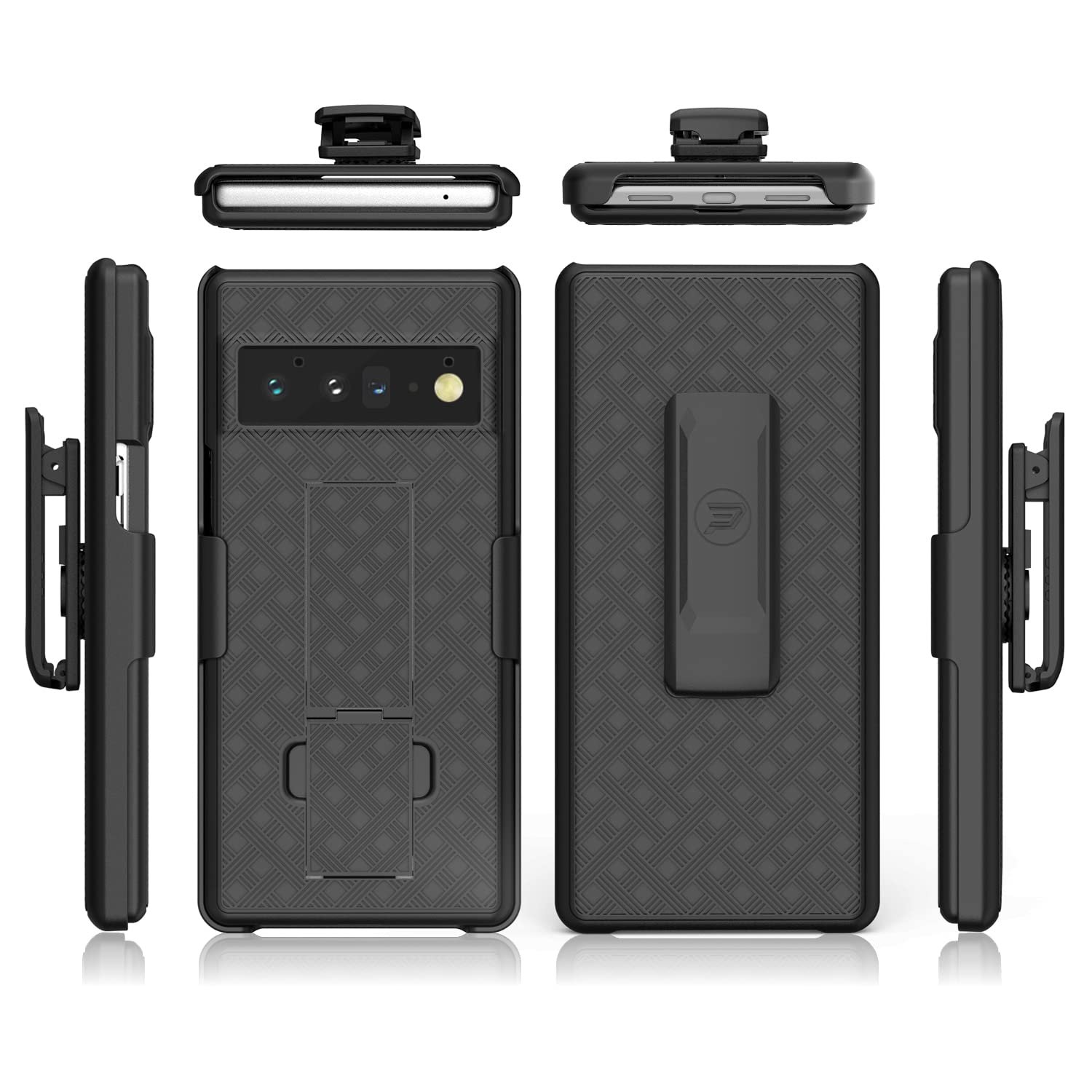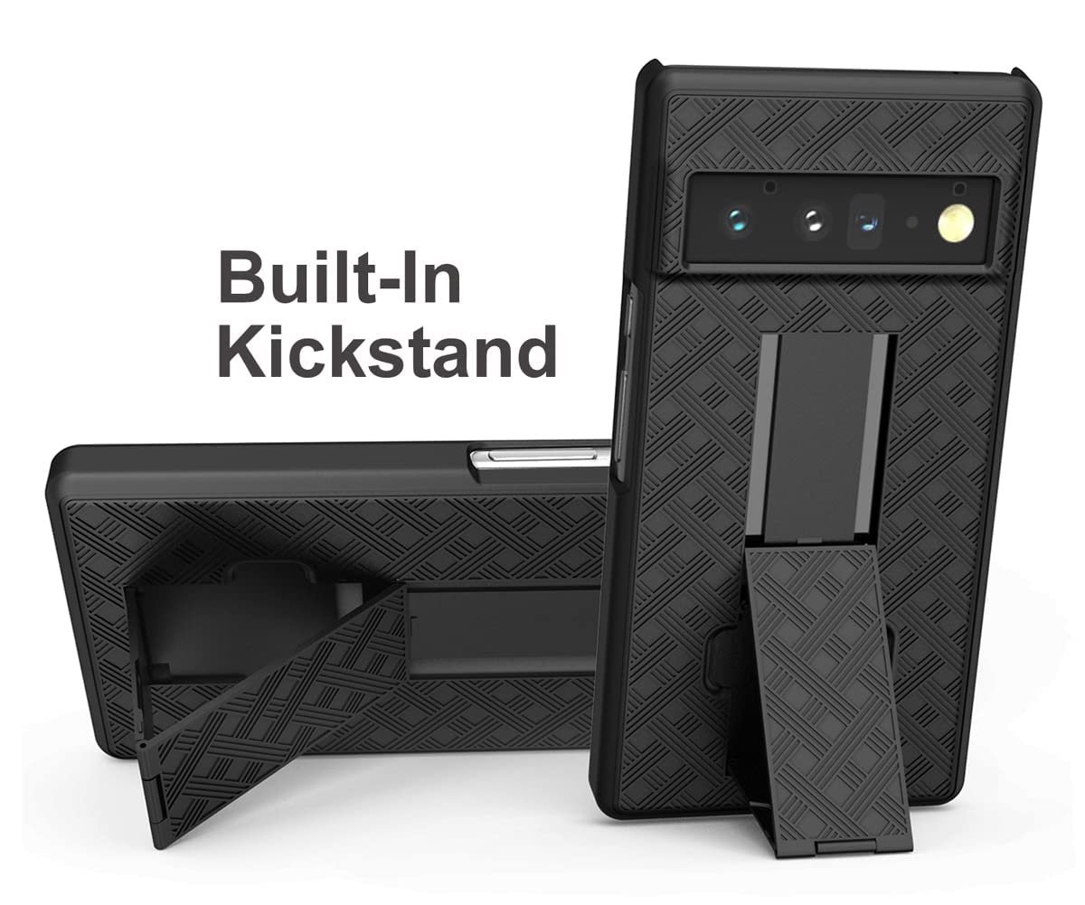 Case Compatible with The Google Pixel 6 PRO Phone (Screen Size 6.7 inch only). Slim Line Case with Kickstand and Belt Clip Holster Combo