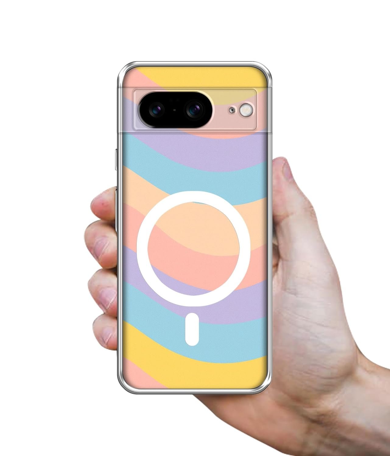 Upgrade your phone style with the Casotec Pastel Rainbow Waves Printed Back Cover Case, designed exclusively for Google Pixel 8 5G. Crafted from premium shock-absorbing TPU material, it offers excellent protection against everyday drops, scratches, and impacts. The precise cutouts ensure full access to all buttons and ports, while the raised bezels protect your camera and screen. Its slim and lightweight profile makes it perfect for daily use without adding unnecessary bulk. Please note, this cover does not include magnets and is not compatible with MagSafe charging or MagSafe accessories, making it an ideal choice for users who prefer a clean, magnet-free design. Give your phone a unique look while keeping it safe — perfect for those who love a touch of modern art in their everyday style.