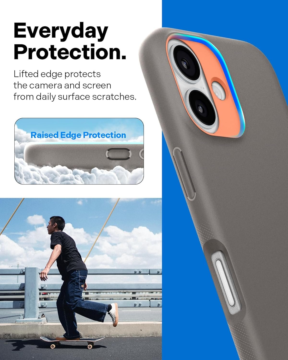 The protruding ring around the camera, adorned with daring and contrasting dual-tone colors, offers both protection and a lively, eye-catching look.