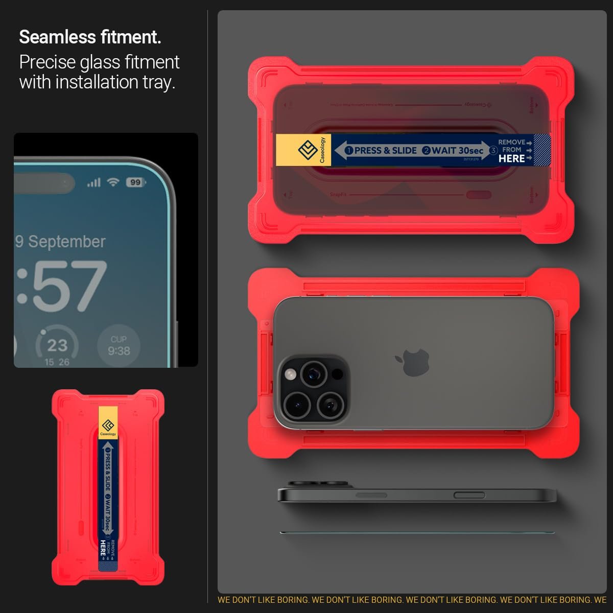 CASEOLOGY by Spigen Snap Fit for iPhone 16 Pro Max Screen Protector [Tempered Glass with Installation Kit] [Anti-Scratch] Screen Guard Protector for iPhone 16 Pro Max – 2 Pack