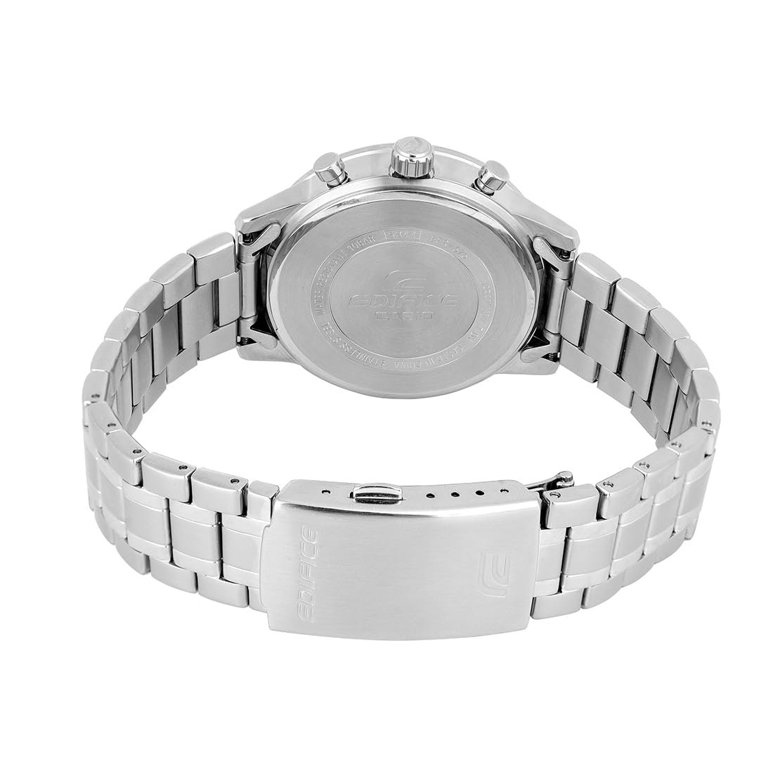 The EDIFICE chronograph inspired by the convex glass gauges of the classic sportscar. The two-tone dial features contrasting colors for the main and inset dials, evoking the look of a classic sportscar’s instrument panel. Details like the convex domed watch glass, stainless-steel case with narrow bezel, and push buttons round off the design with time-honored style.