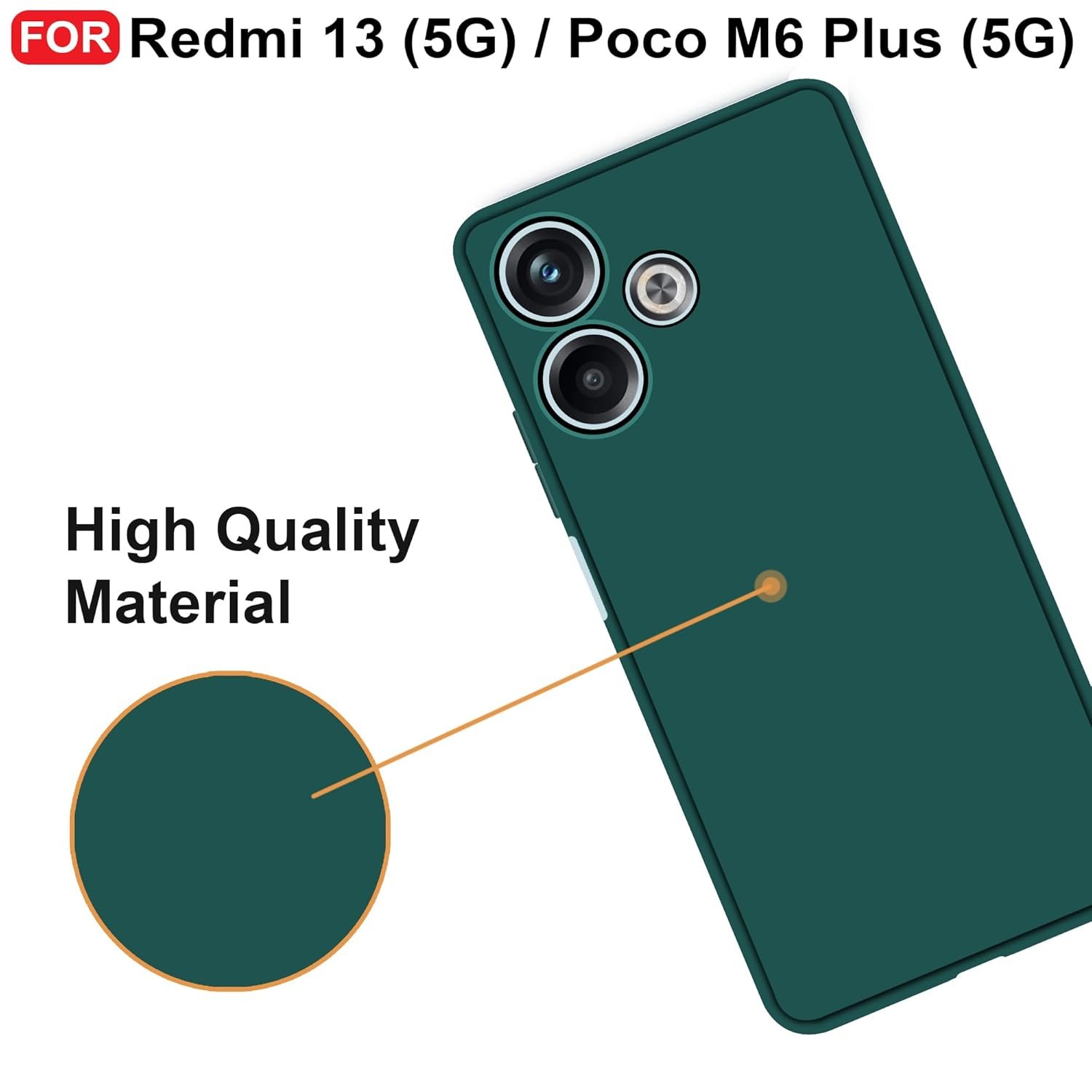CEDO Redmi 13 (5G) / Redmi 13 Prime Edition/Poco M6 Plus (5G) Back Cover | Camera Bump Protection & Inner Velvet Fabric Lining | Ultra Slim Matte Soft Rubberised Case Cover (Green)