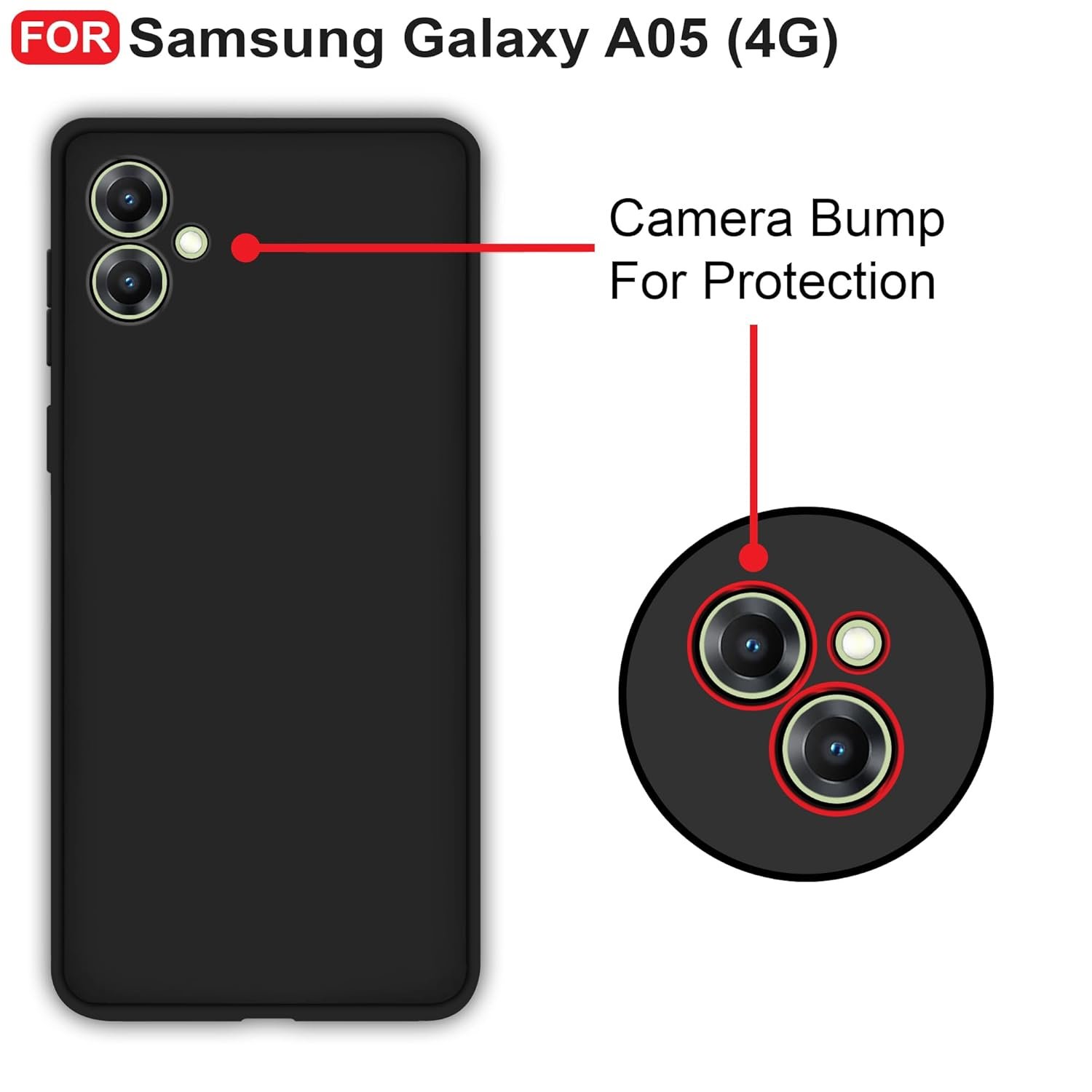 CEDO Samsung Galaxy A05 / F05 / M05 (4G) Back Cover | Camera Bump Protection & Inner Velvet Fabric Lining | Ultra Slim Matte Soft Rubberised Case Cover (Black)