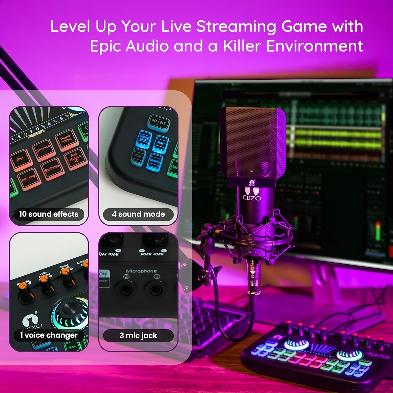CEZO’s microphone boasts a high-quality condenser capsule that captures nuanced, detailed audio with exceptional clarity.