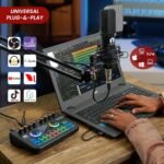 Upgraded Podcast Equipment Bundle – Cezo Professional podcasting microphone bundle is equipped with podcast microphones and microphone hanging arm clippers, newly-designed X3 sound card. This studio equipment integrates audio interface into one operation panel, offers rich functions and multiple controls to optimize your voice, free drive, plug and play, This condenser microphone set can meet all your needs and you don’t need to buy other equipment again.
