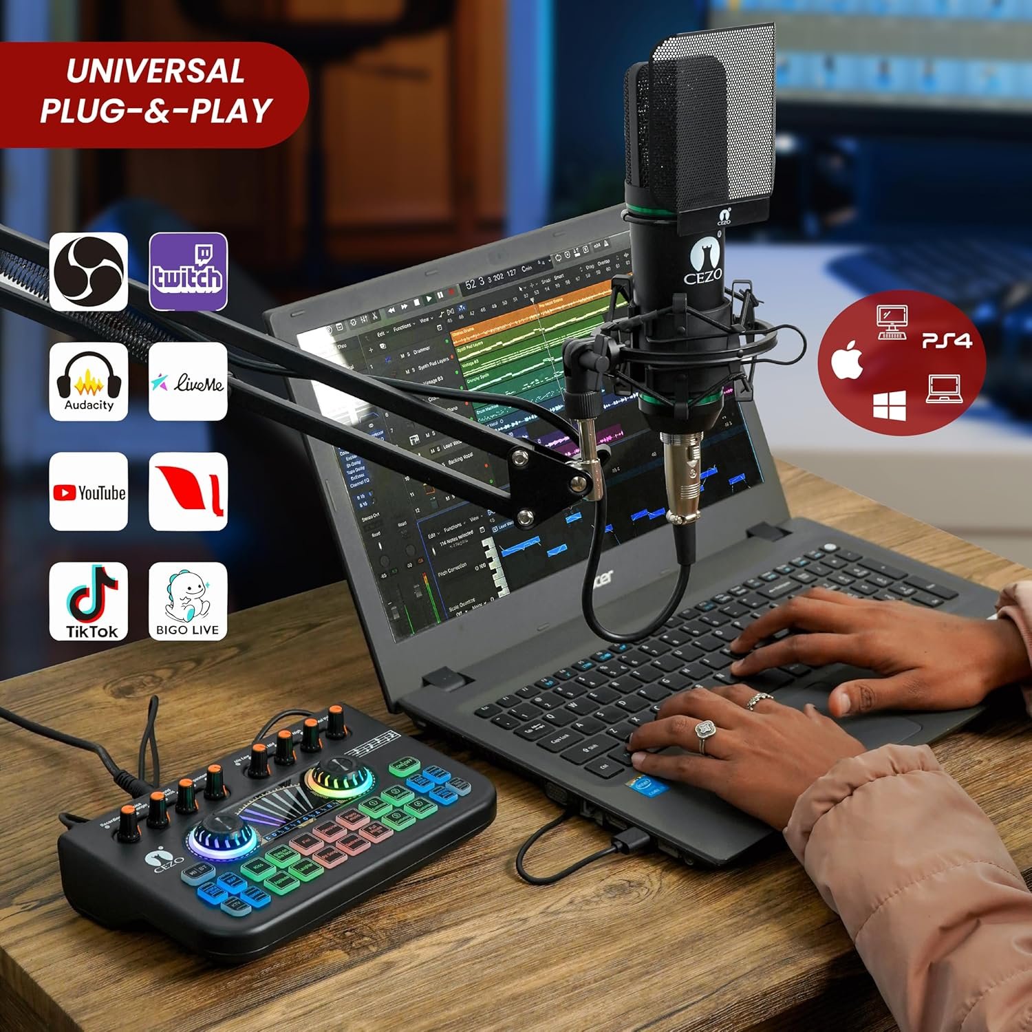 The CEZO microphone and X3 sound card mixer work together to deliver 48kHz/16-bit high-definition audio, capturing every detail of your voice with crystal clarity.