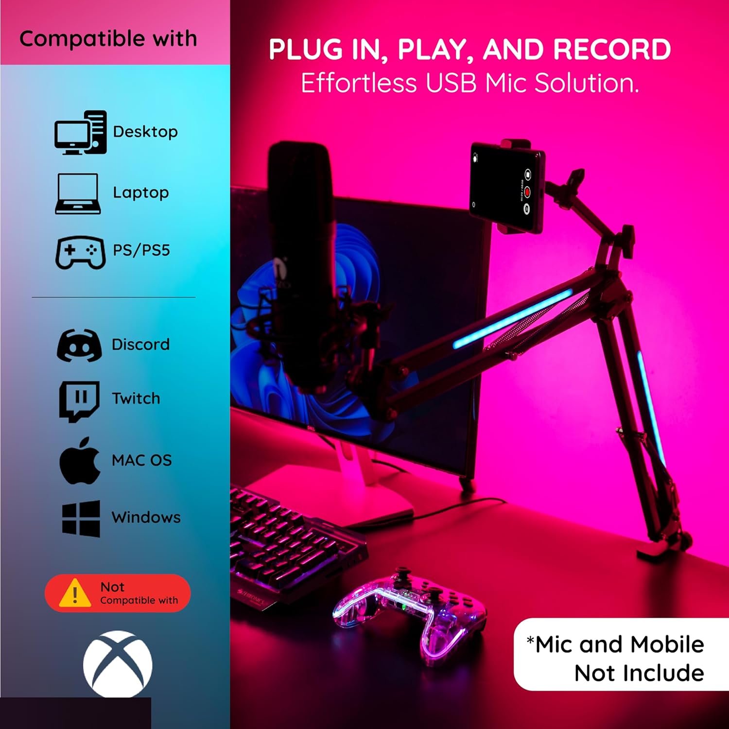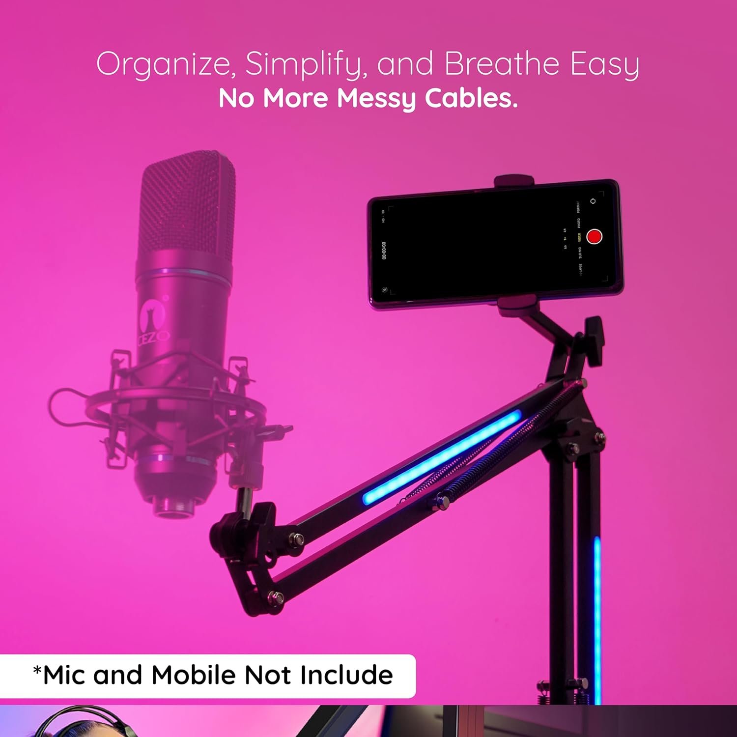 Keep your Space Organized: We designed the desk mic arm with built-in cable management to help keep your space tidy and organized. Whether you’re recording, singing, podcasting, or streaming, our microphone boom arm with RGB will make sure you can speak, sing, and record comfortably