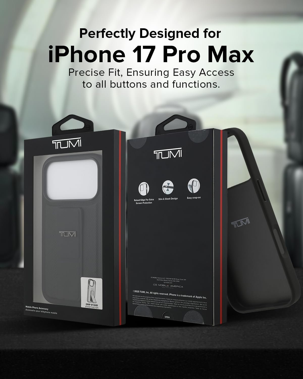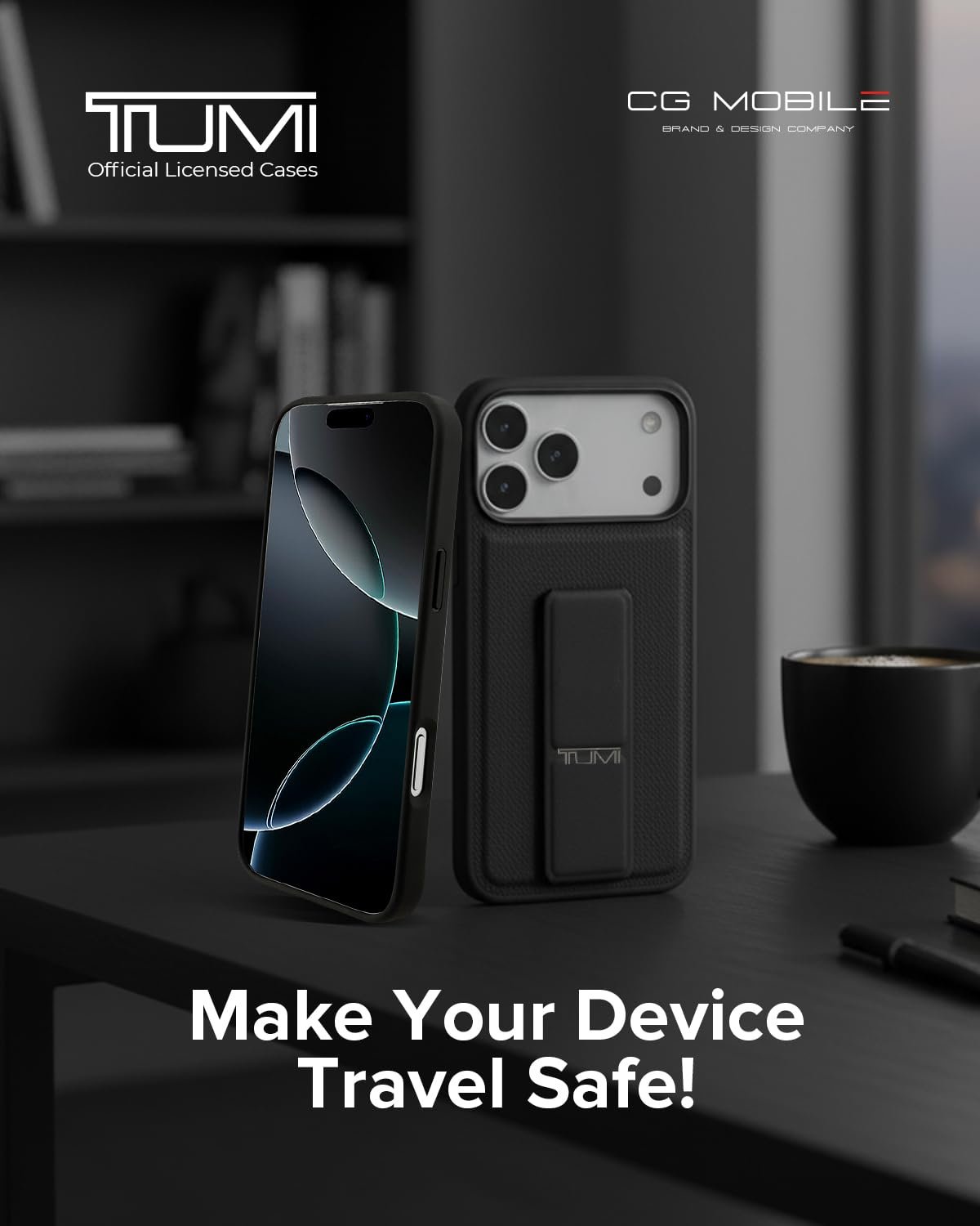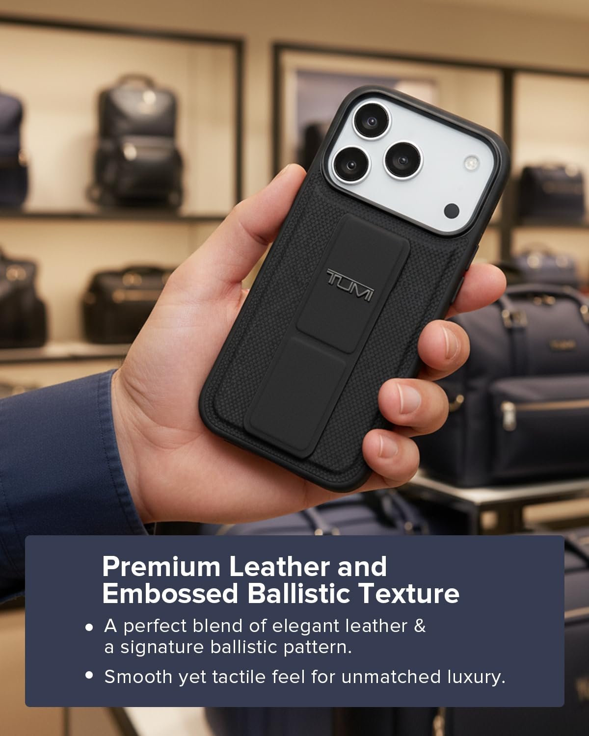 CG MOBILE TUMI [Official Licensed] Protective Case Designed for iPhone 17 Pro Max |Leather Hard Case Grip Stand & Embossed Balistic Pattern -Black