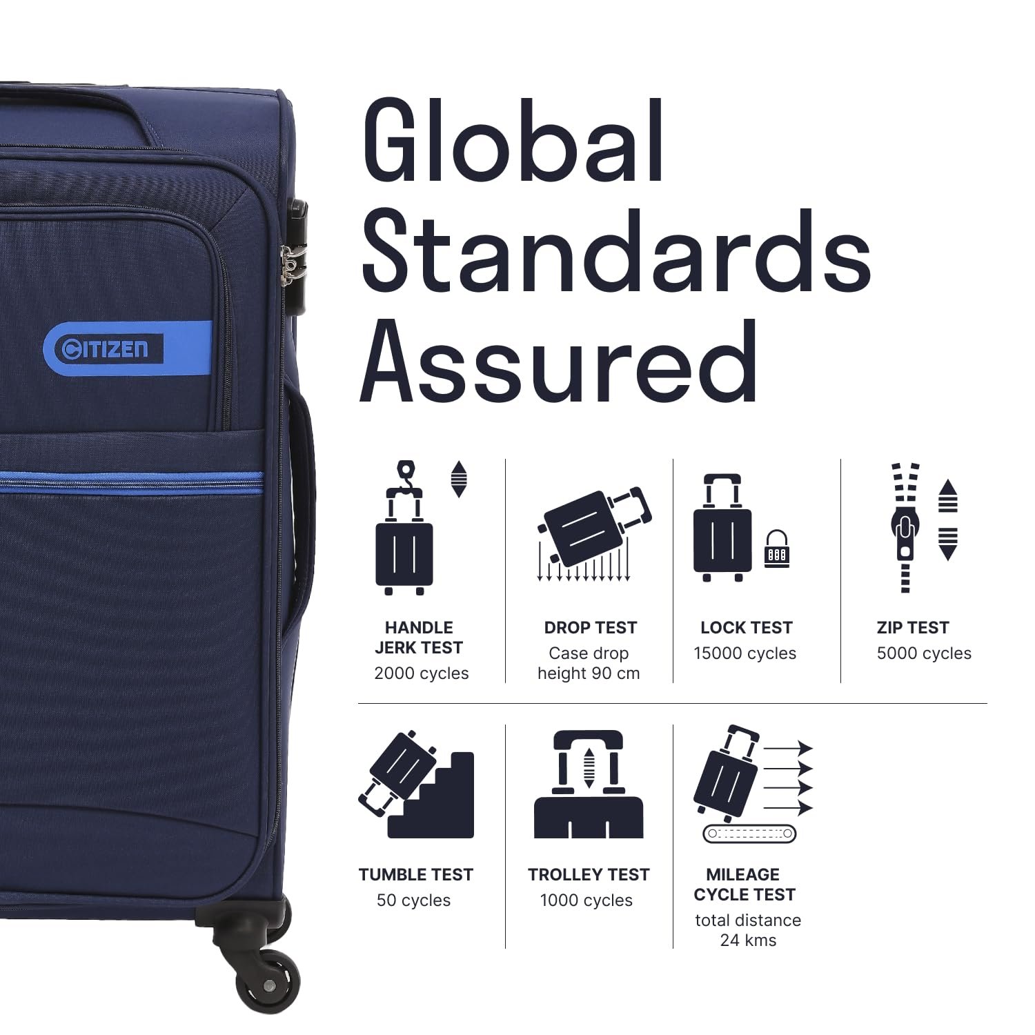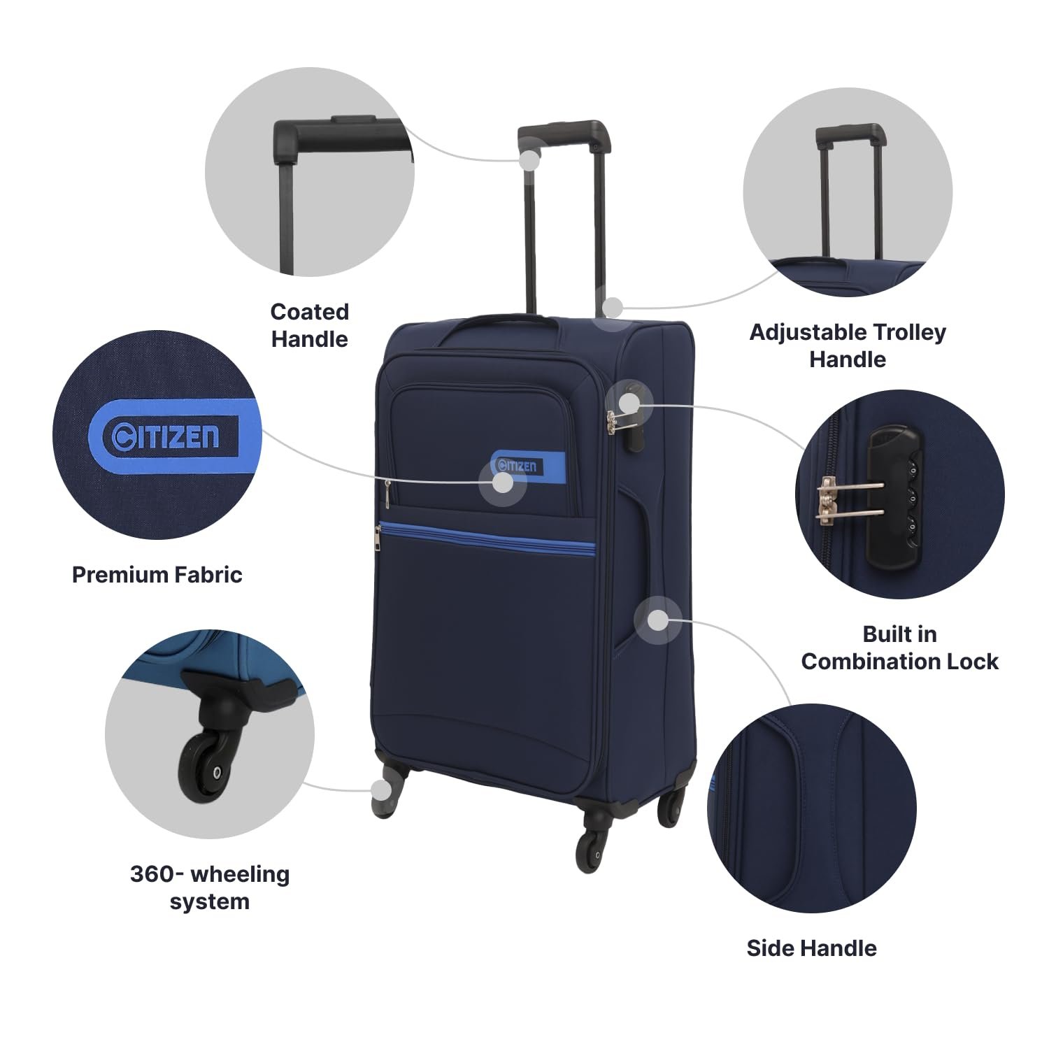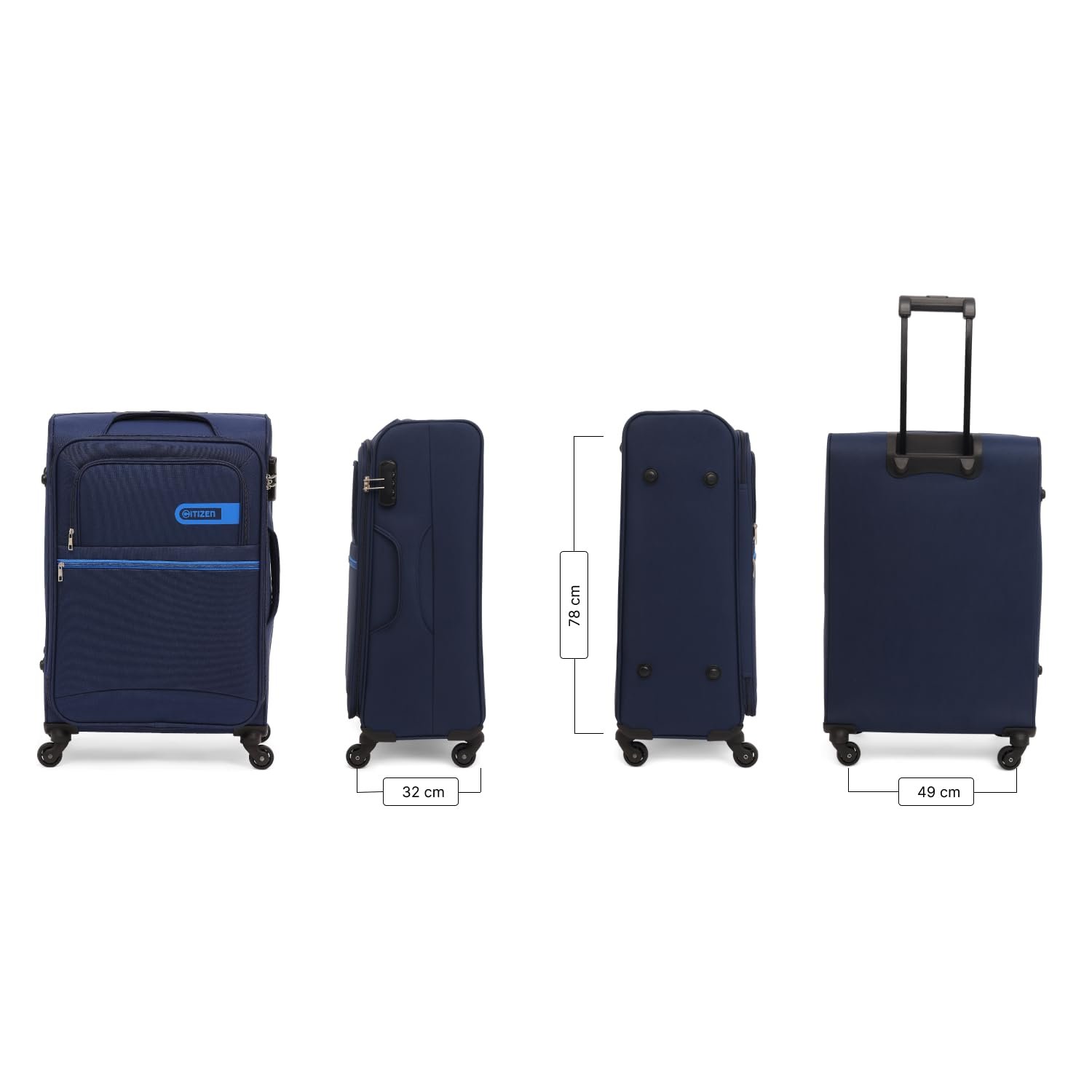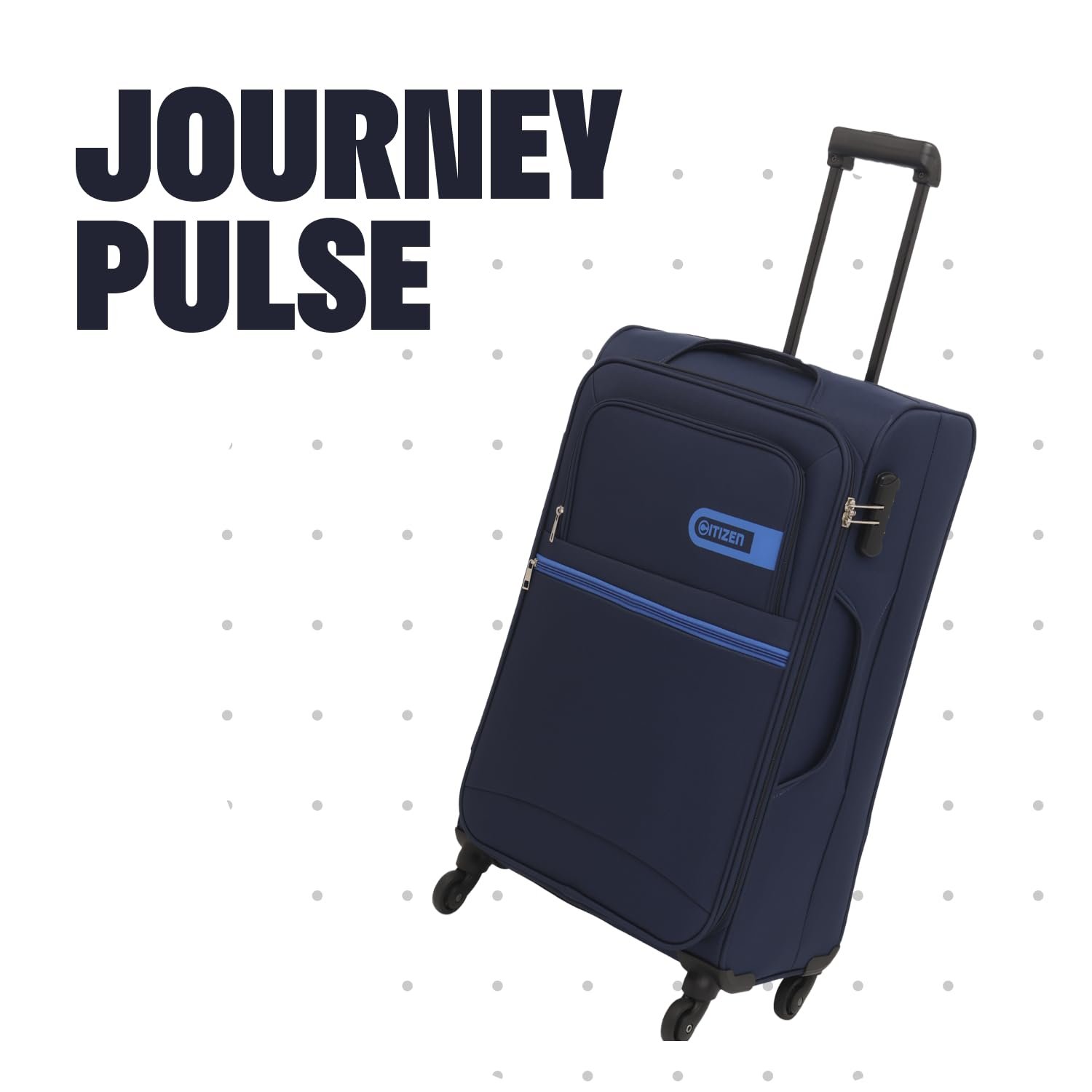 Citizen Journey Pulse Trolley Bag for Travel 78 cms Large Check-in Luggage Bag | Polyester Soft Sided Suitcase for Travel with 4 Spinner Wheel & Built-in Combination Lock (Navy Blue)