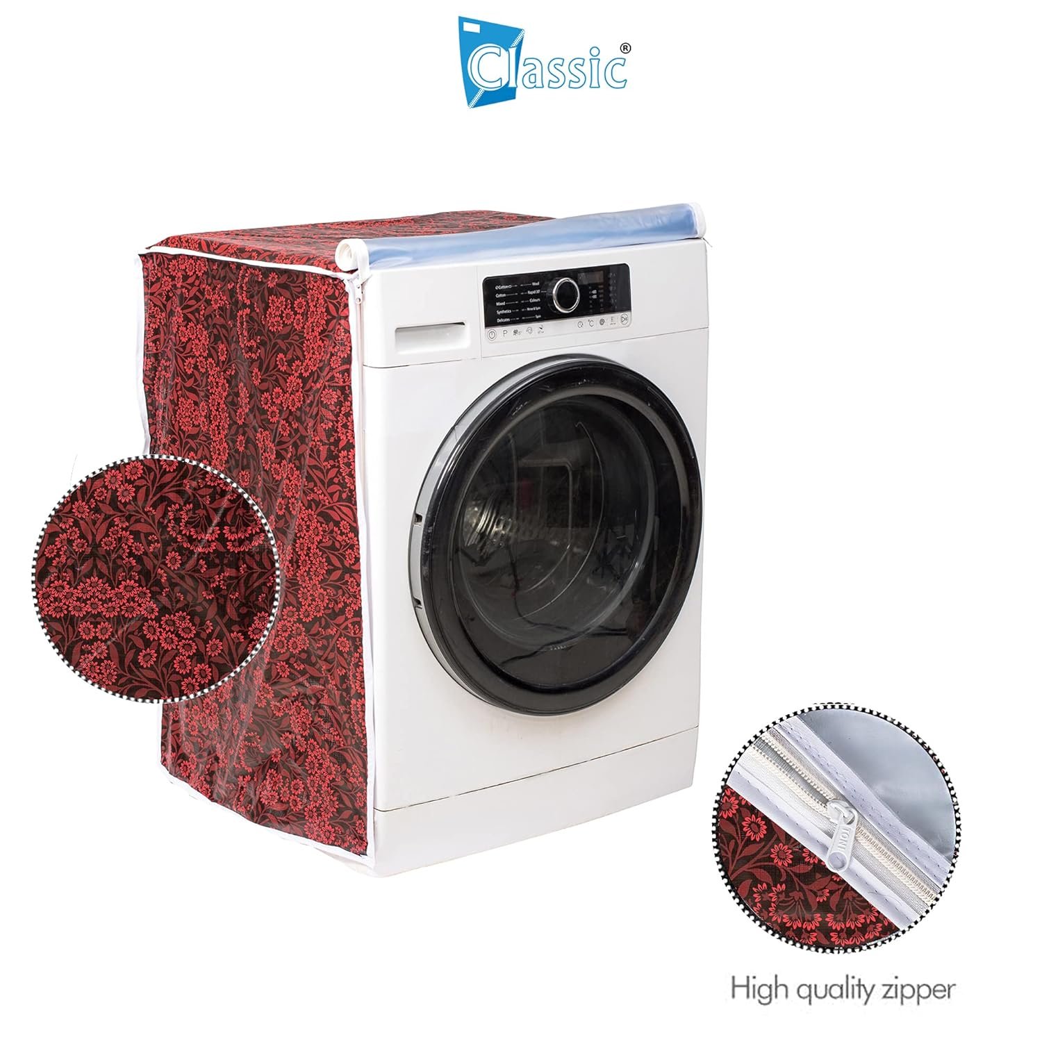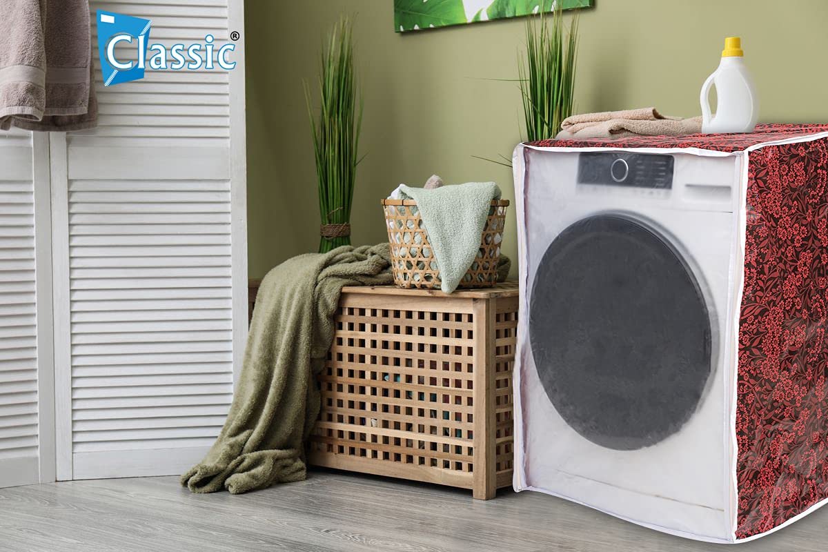Classic® Front Load Washing Machine Cover Suitable for Samsung 8.5 Kg, 9 Kg, 9.5 Kg, 10 Kg, 10.5 Kg, 11 Kg, 11.5 Kg, 12 Kg (72cmsX63cmsX81cms, Red Flower)